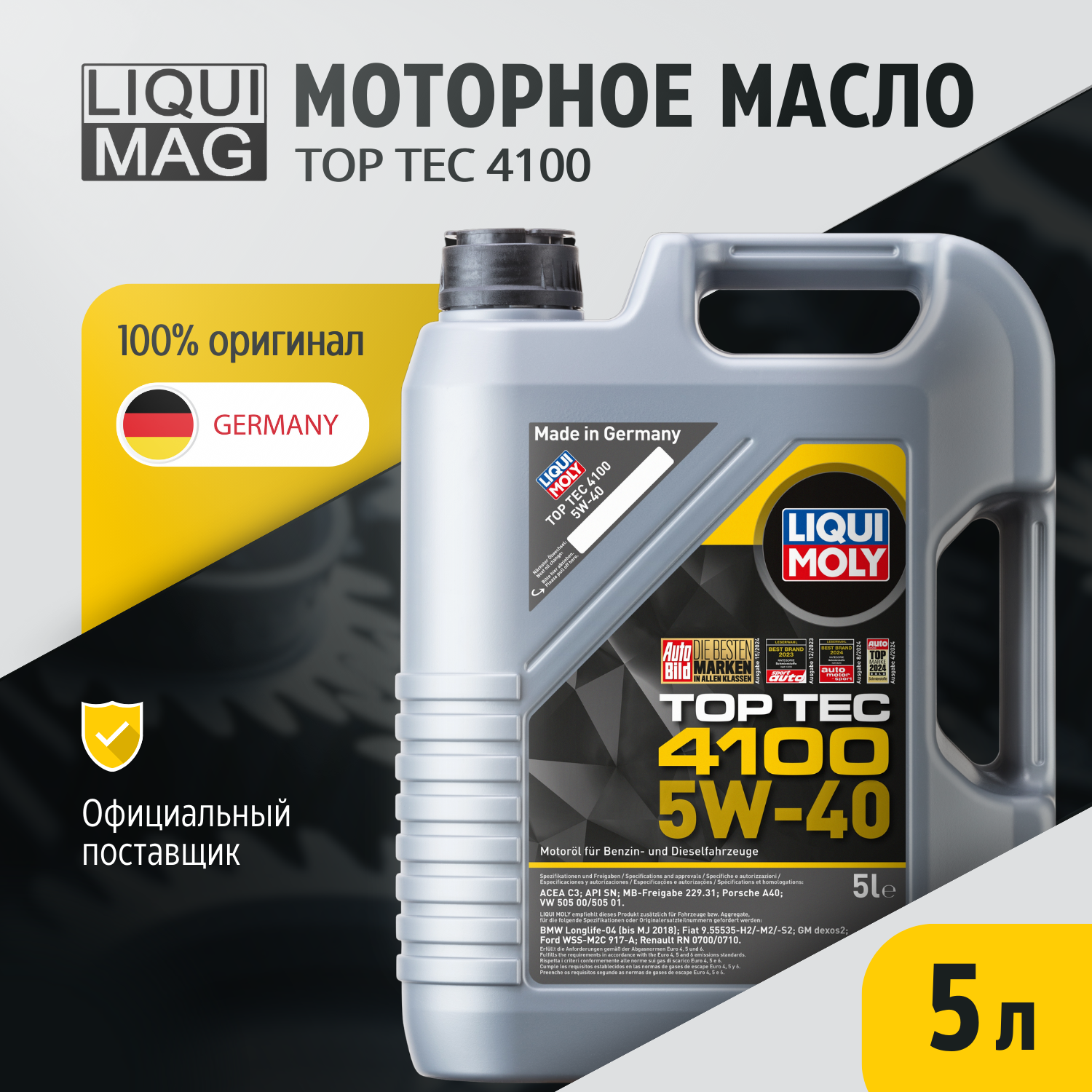 Ниже Вы можете прочитать отзывы на Масло моторное Liqui Moly Top Tec 4100 5W40, синтетика, 5литров 9511/7501, ознакомится с подробными характеристиками, посмотреть интересные обзоры и фотографии на Масло моторное Liqui Moly Top Tec 4100 5W40, синтетика, 5литров 9511/7501.