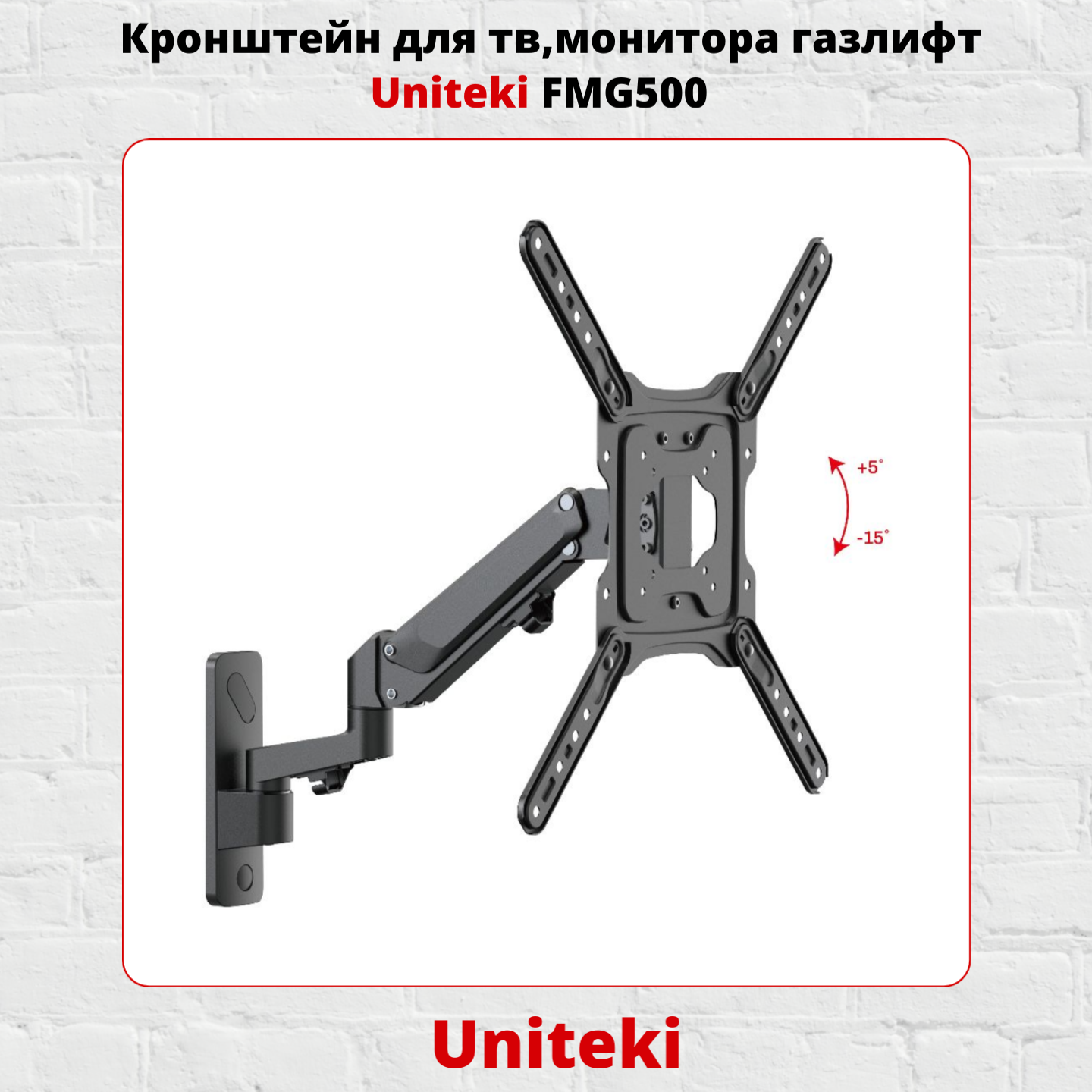 Кронштейн для телевизора на стену наклонно-поворотный с газлифтом диагональю 23"-55" UniTeki FMG500,белый
