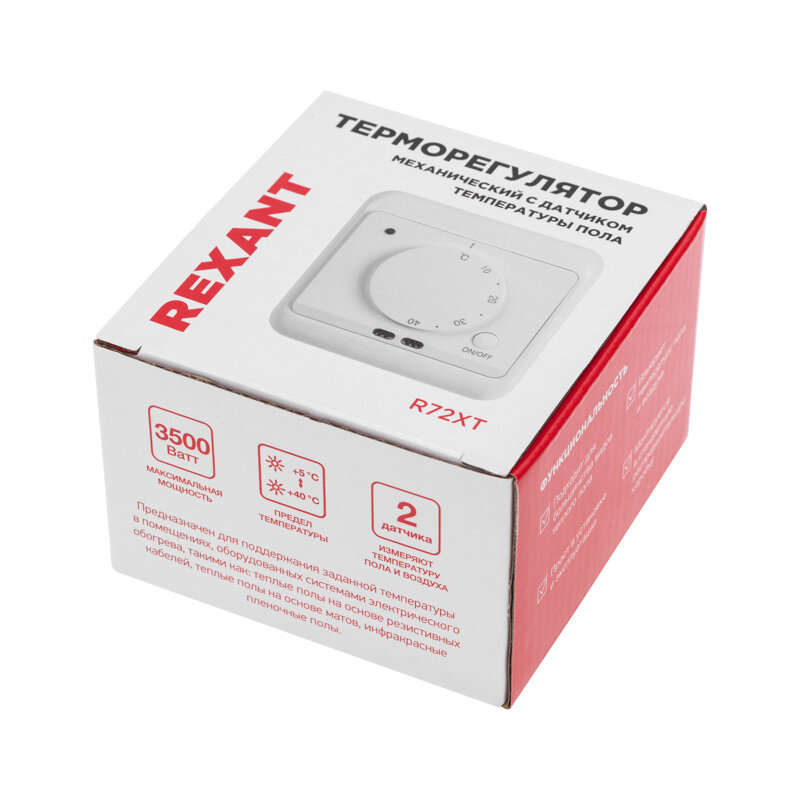 Терморегулятор механический с датчиком температуры пола и воздуха (R72XT) (белый) REXANT (1/1/64)