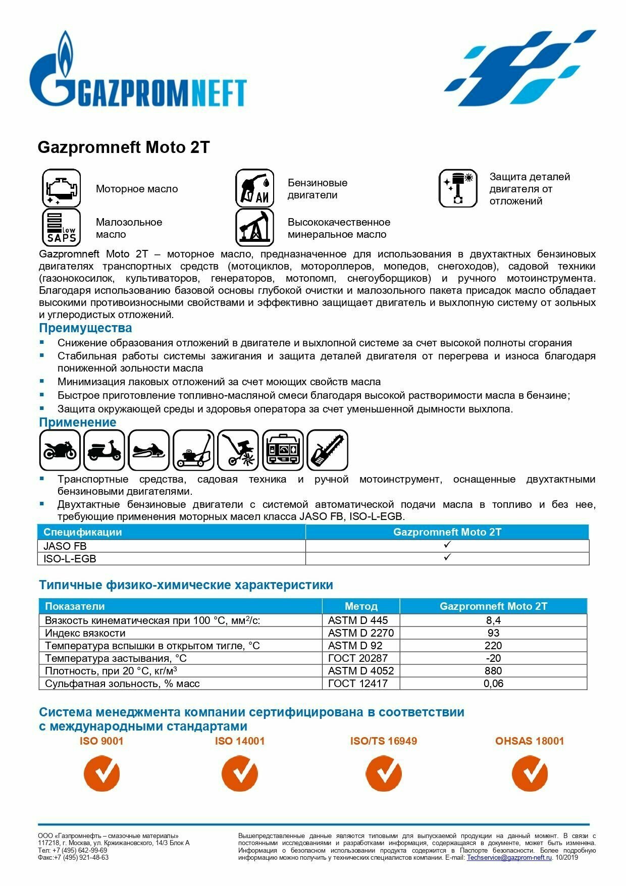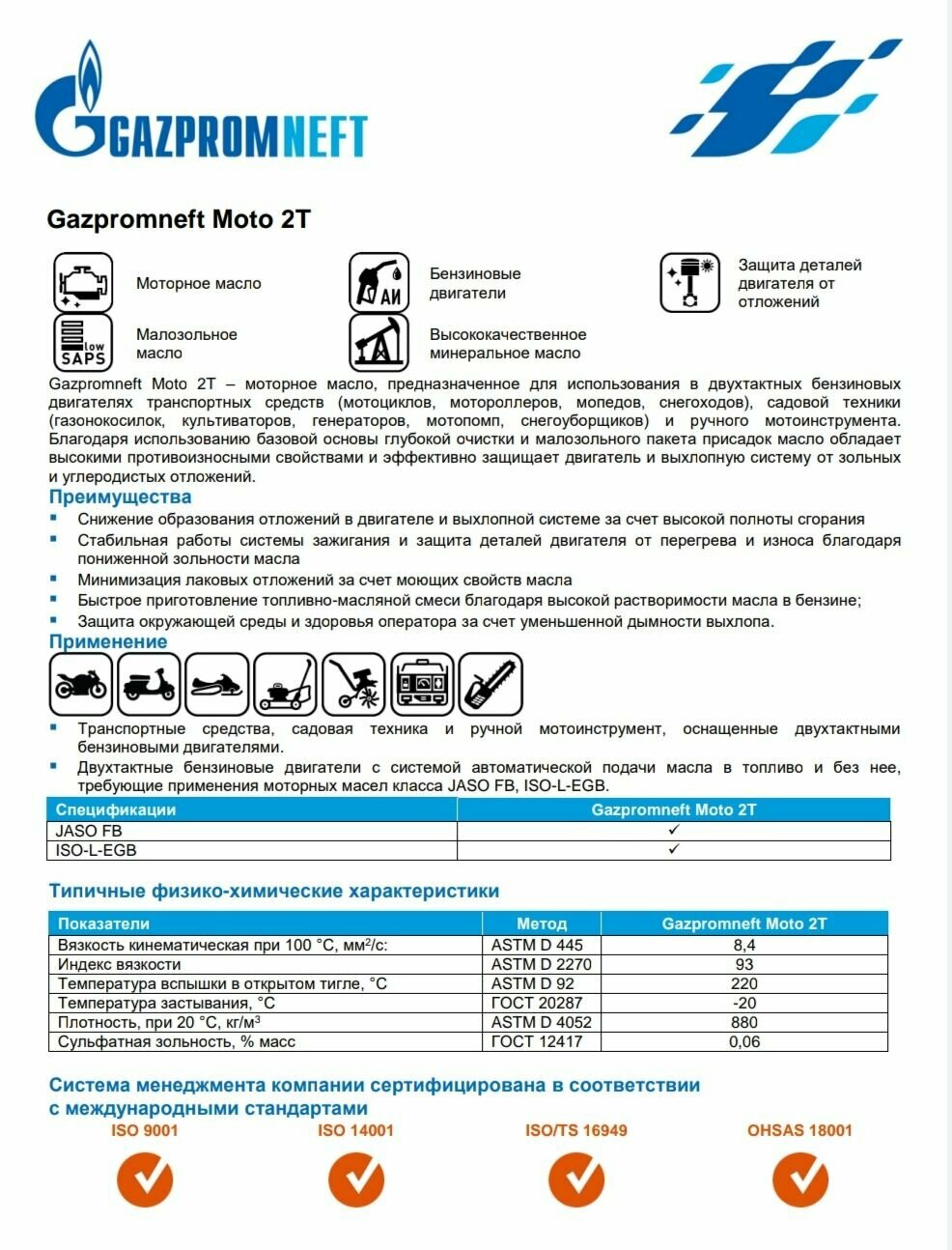 | Плюсы: | Масло для двухтактных бензиновых двигателей всех мастей. |