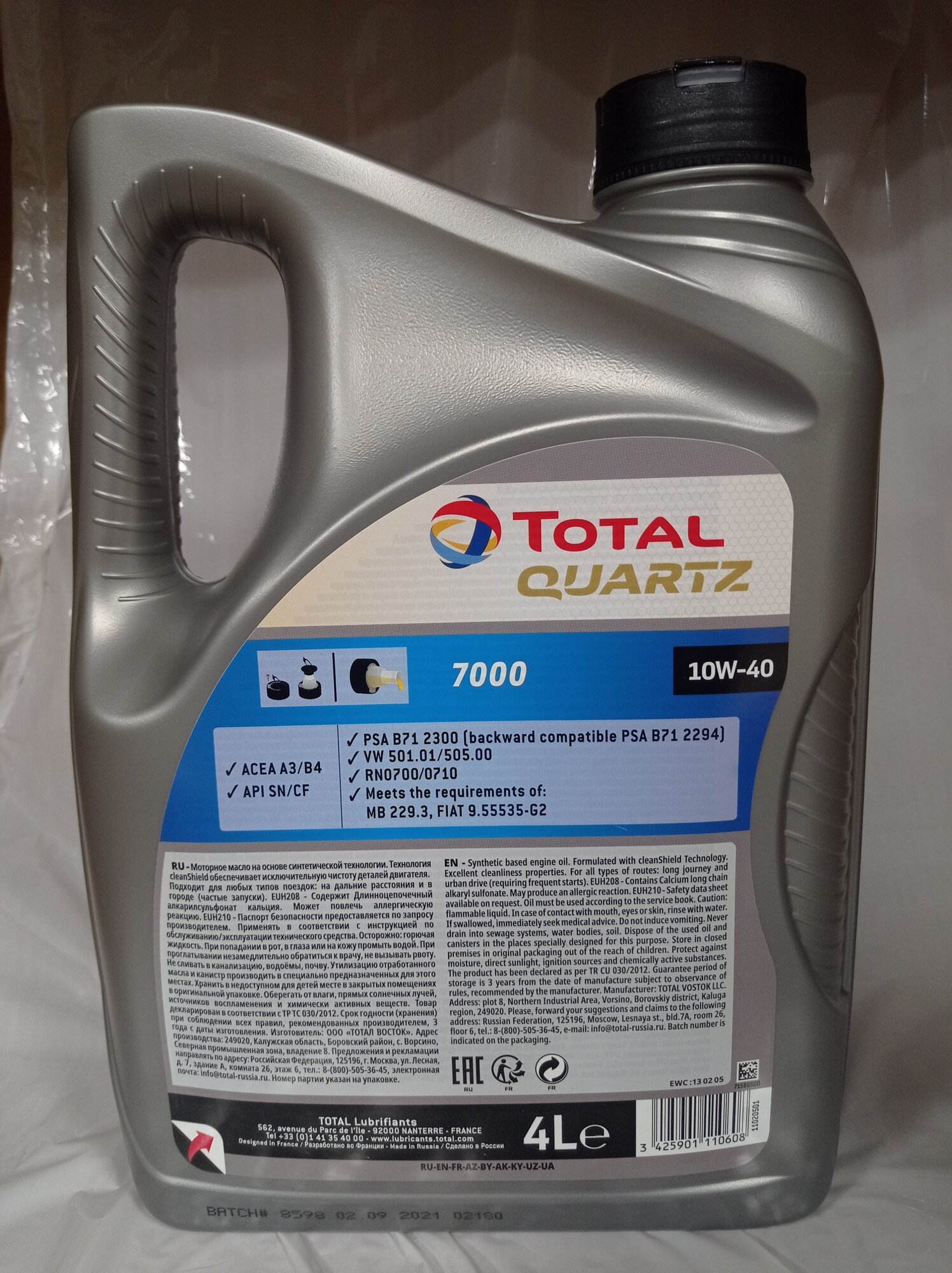Масло total quartz 10w40 7000/7000s api sn/cf 4л п/с 11020501/228840