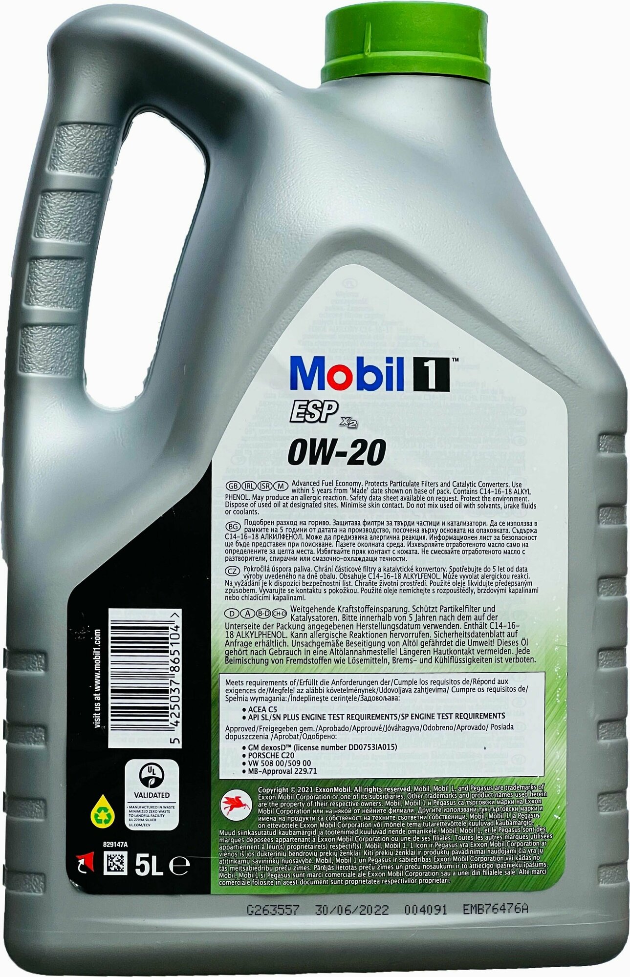 Масло моторное Mobil 1 ESP X2 0w20 5л синтетическое (EU для европейского рынка)