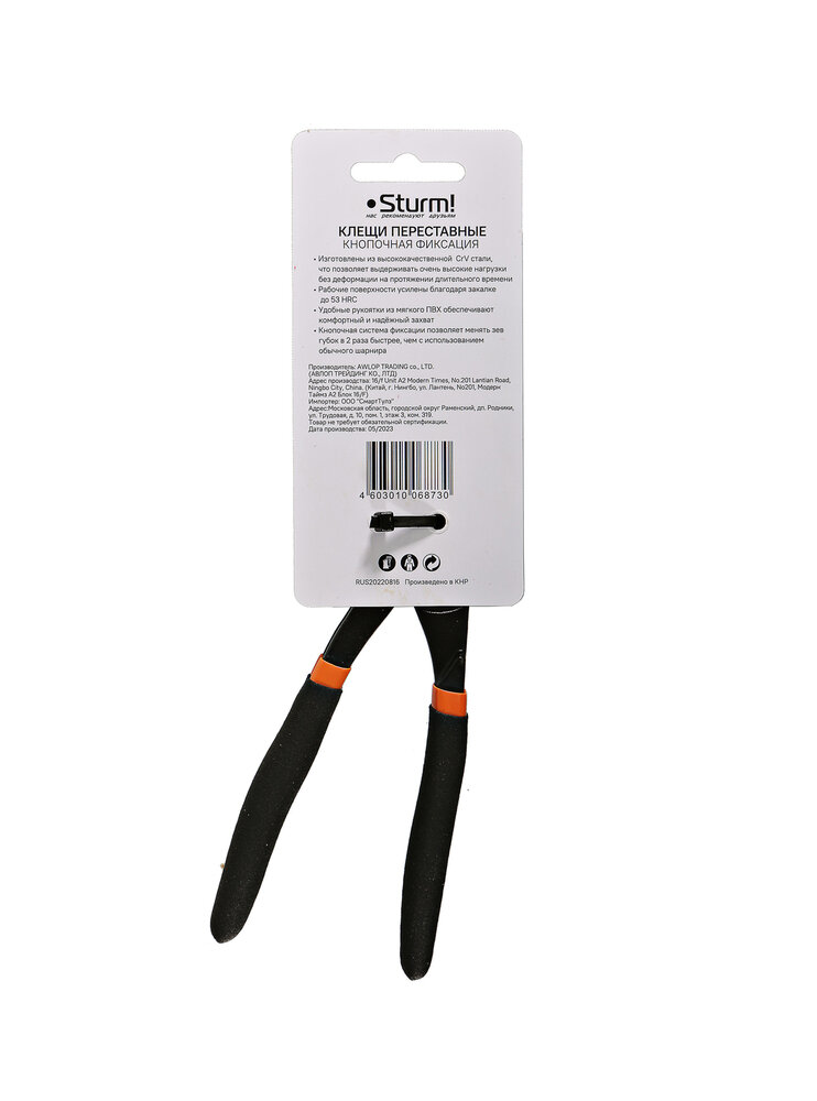 Клещи переставные STURM! 200мм (Галка) усиленные, рукоятки из мягкого ПВХ, тип А6, 1020-06-B200