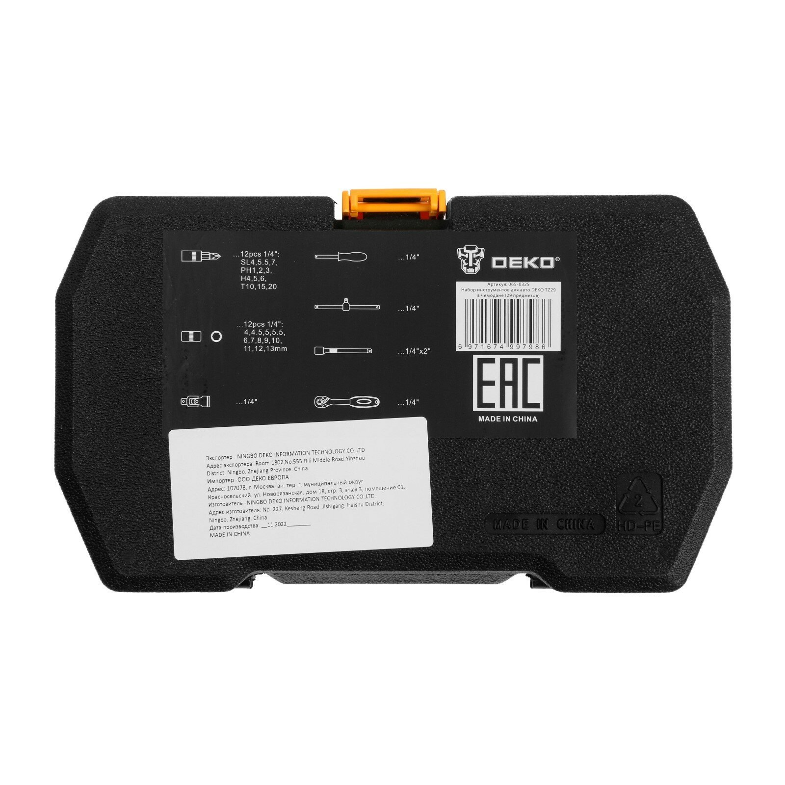 Набор автомобильных инструментов DEKO 065-0325, 29 предм., черный/оранжевый/серебристый