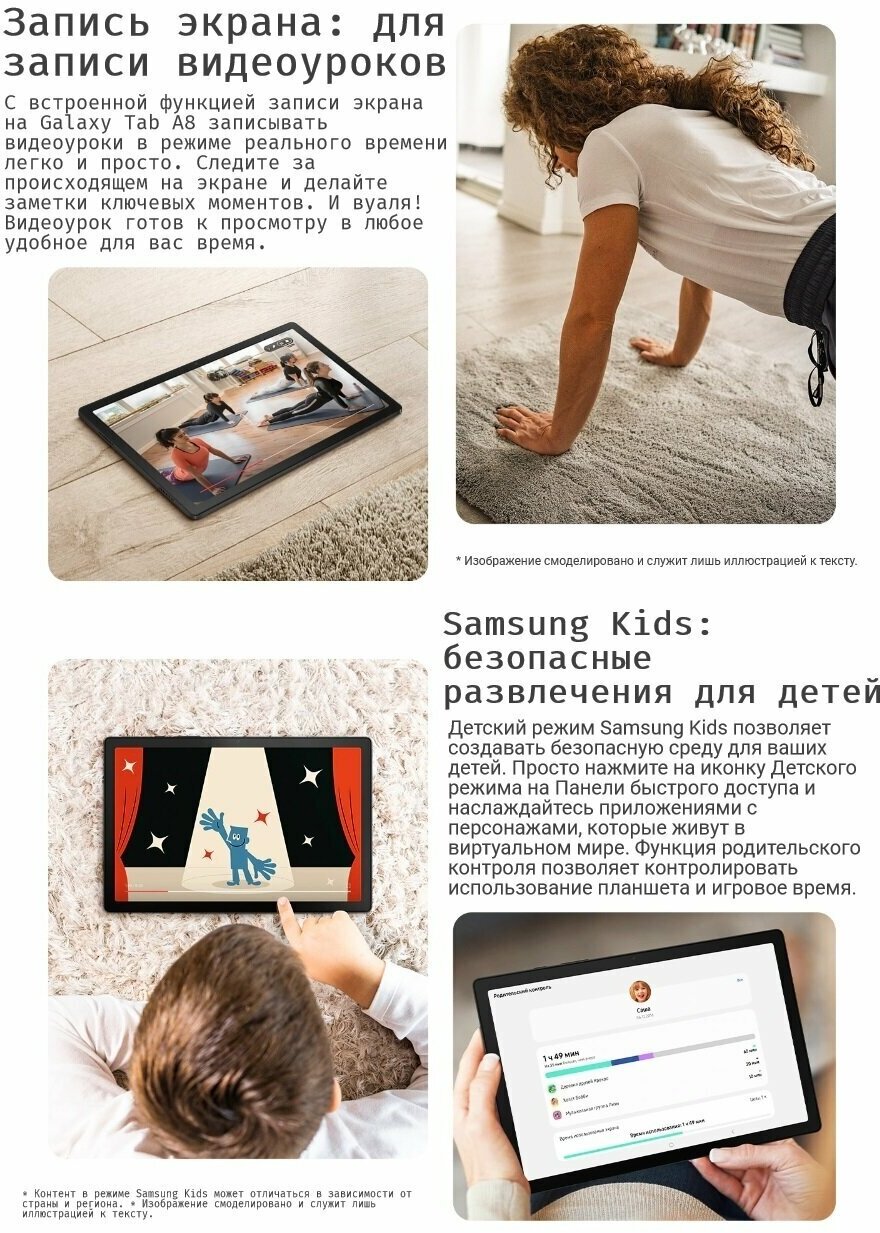 10.5" Планшет Samsung Galaxy Tab A8 (2021), RU, 4/64 ГБ, Wi-Fi, Android 11, темно-серый