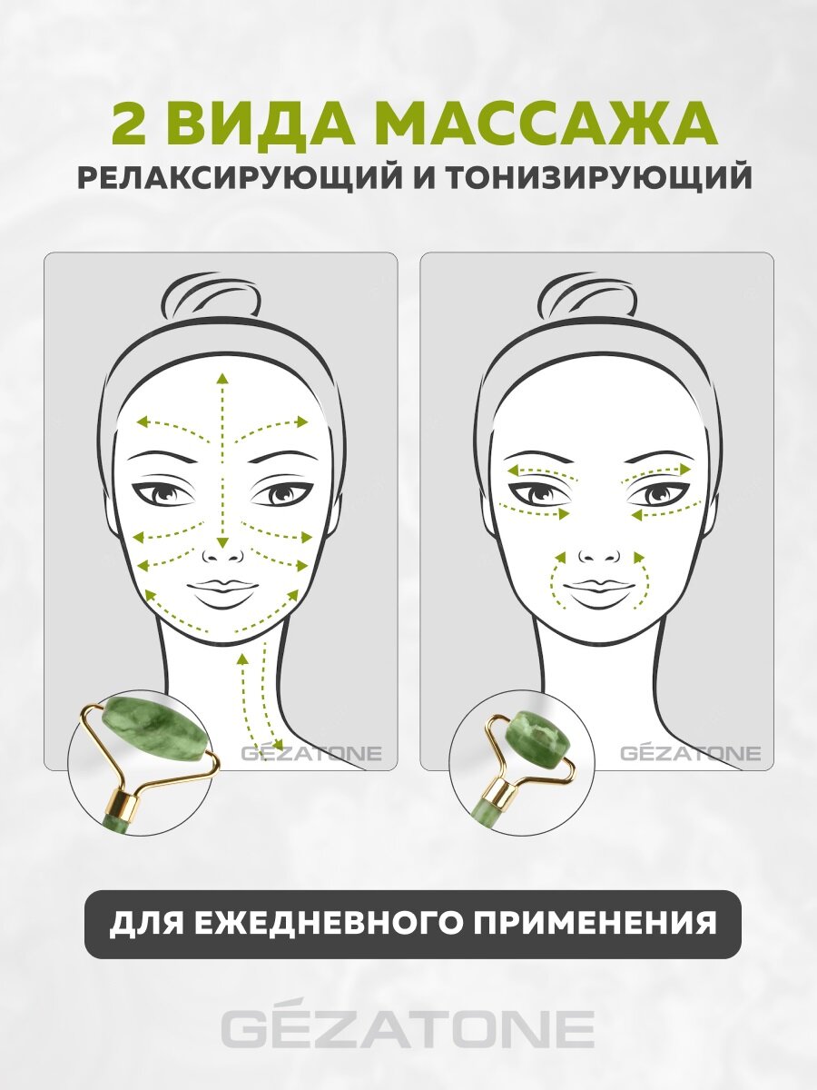 Gezatone, Натуральный нефритовый роликовый массажер для лица, массажный косметический ролик для лица, глаз и шеи, роллер AMG330