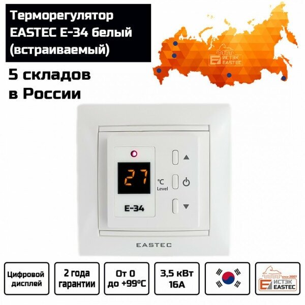 Eastec Терморегулятор E-34 белый (Встраиваемый 3,5 кВт) E-34 white .