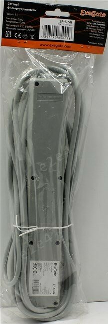 Сетевой фильтр ExeGate Sp-6-5g серый .