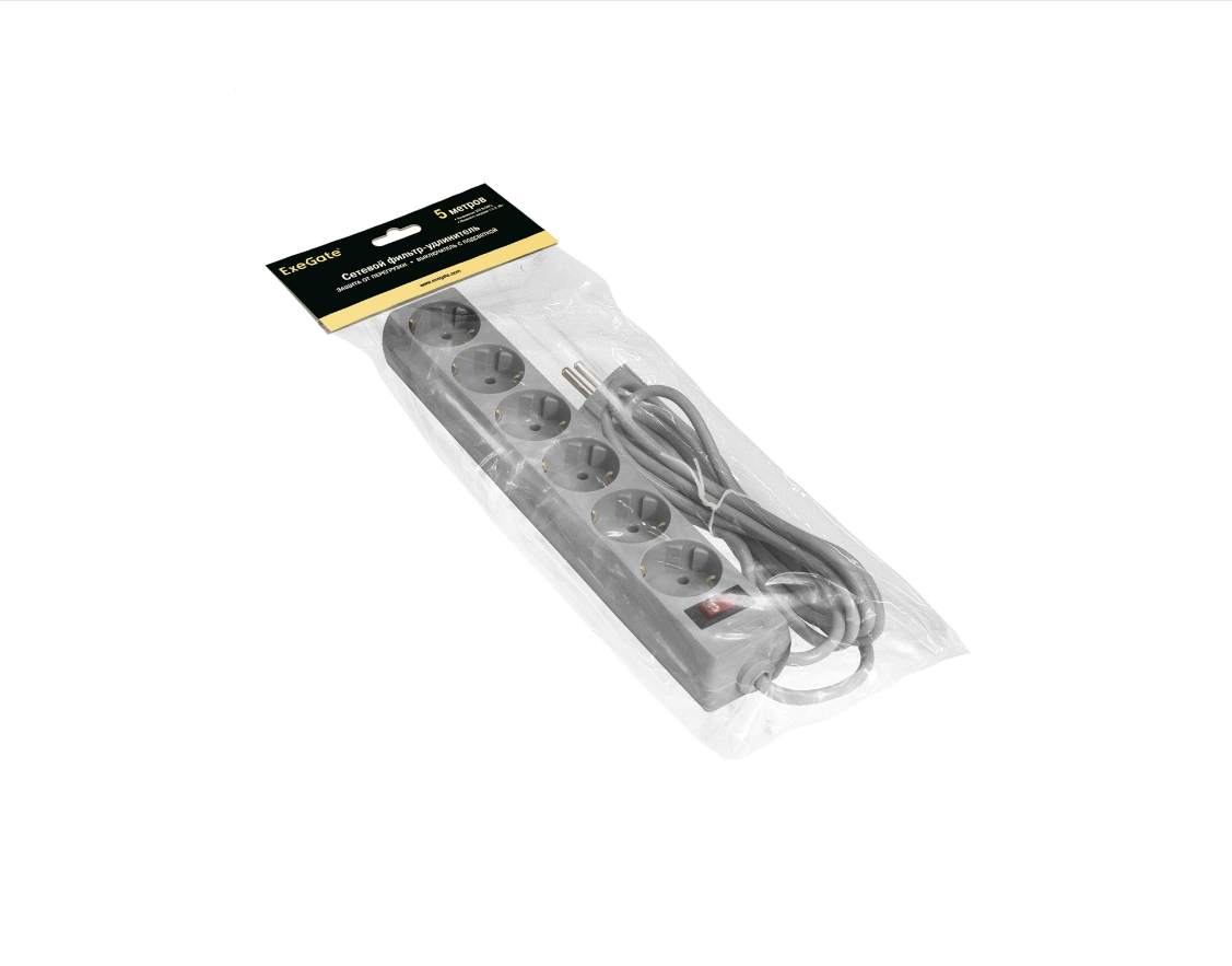 Сетевой фильтр ExeGate 6 розеток, 5 м, серый (SP-6-5G)