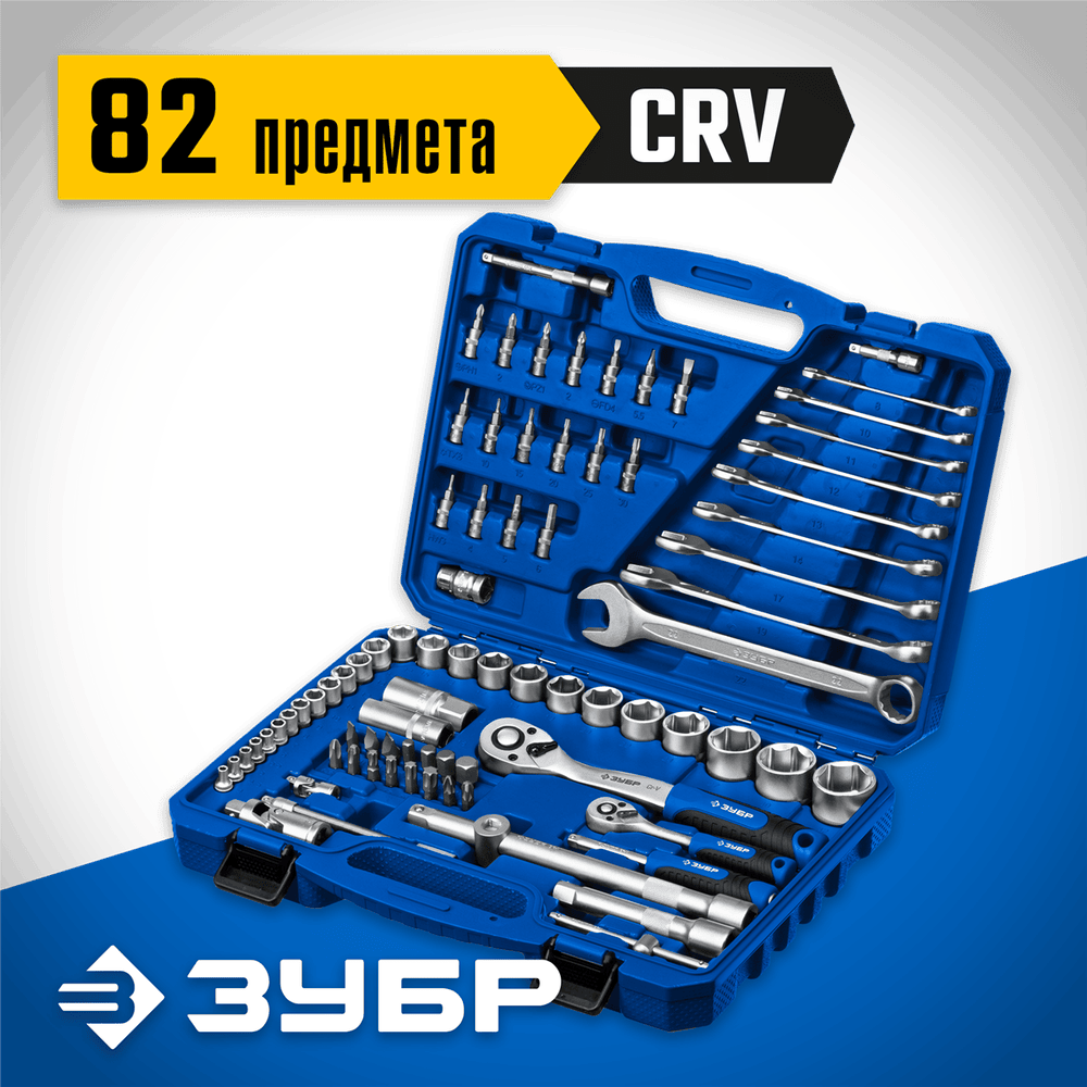 ЗУБР А-82, 82 предм.(1/2" + 1/4"), Универсальный набор инструмента (27635-H82)