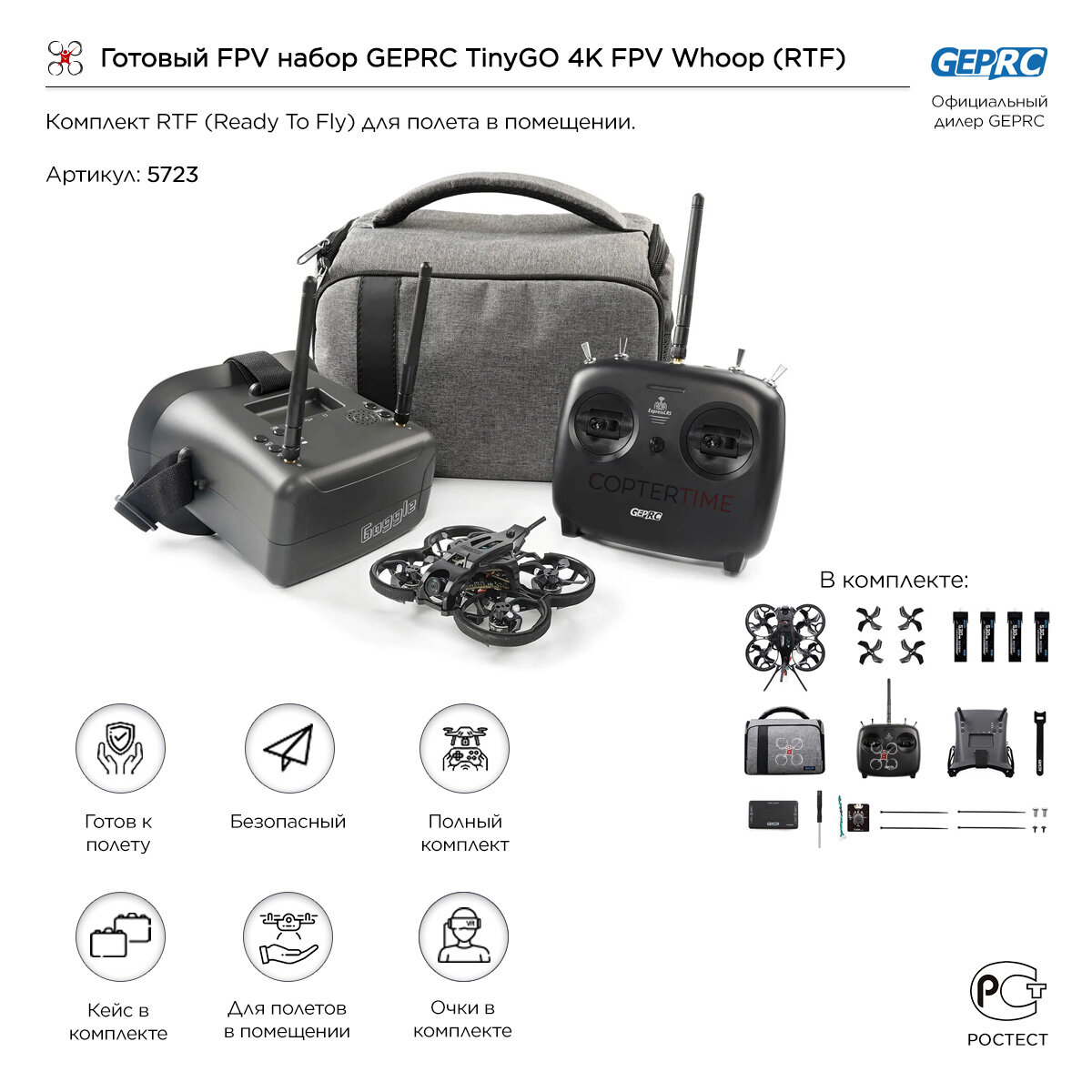 Готовый FPV набор GEPRC TinyGO 4K FPV Whoop (RTF) интересное: