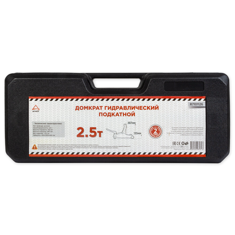 arnezi r7101126 Домкрат гидравлический подкатной 2,5т 135-387мм в кейсе arnezi r7101126