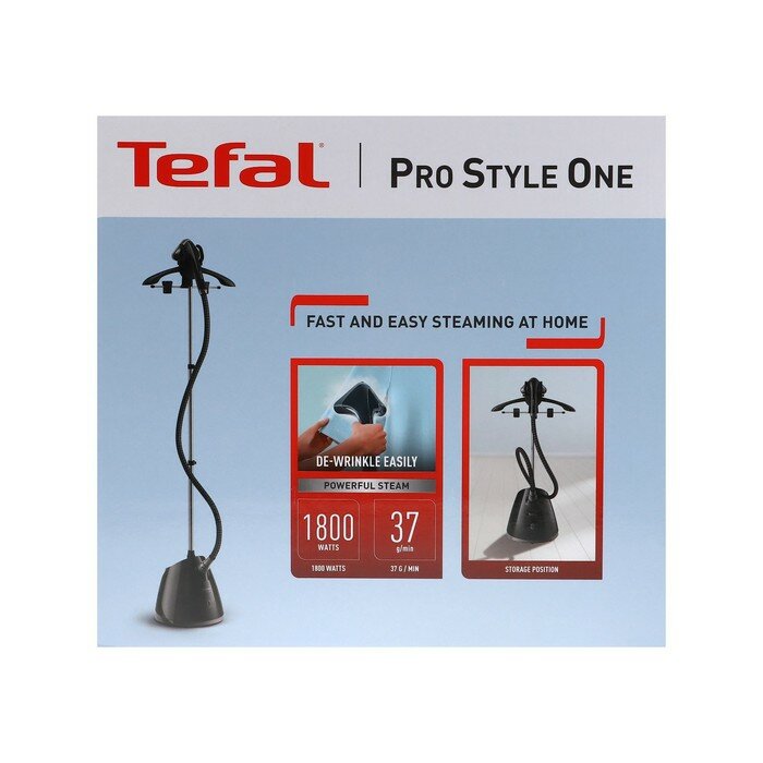 Вертикальный напольный отпариватель Tefal Pro Style One IT2461E0 с насадкой для плотной ткани и быстрым нагревом, 1800 Вт, черный