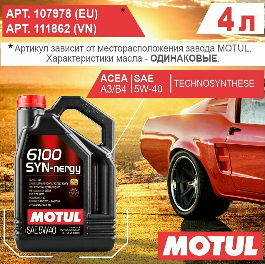 MOTUL 107978 Масло моторное MOTUL 6100 Syn-Nergy 5W40 4 л 107978