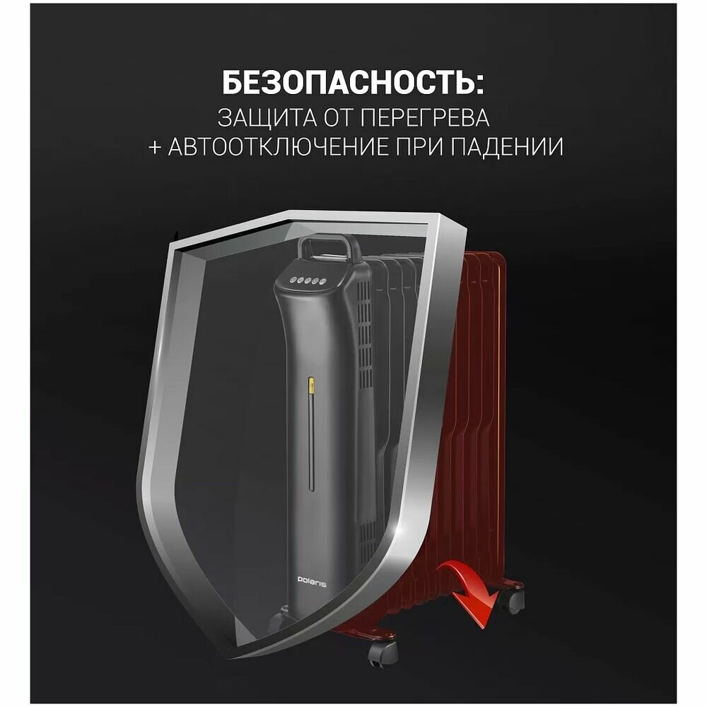 Масляный радиатор Polaris POR 0520, с терморегулятором, 2000Вт, 9 секций, 3 режима, черный
