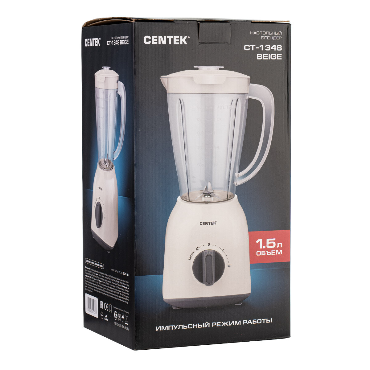 Блендер стационарный Centek CT-1348, 600Вт,стакан 1.5л, 2 скор + Pulse, 4 лезвия, бежевый