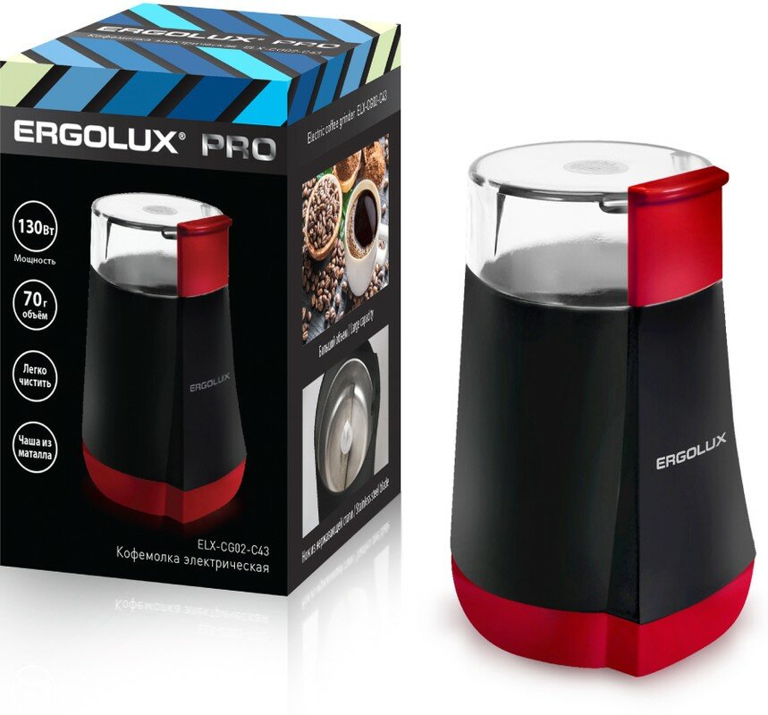 ELX-CG02-С43 черно-красная (электрическая кофемолка130 Вт, 220-240 В, объем 70 гр) ERGOLUX ELX-CG02-C43 (1 шт.)