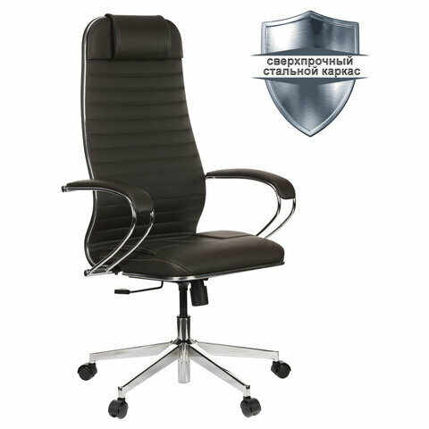 Купить Кресло офисное метта "К-6" хром, экокожа, сиденье и спинка мягкие, темно-коричневое