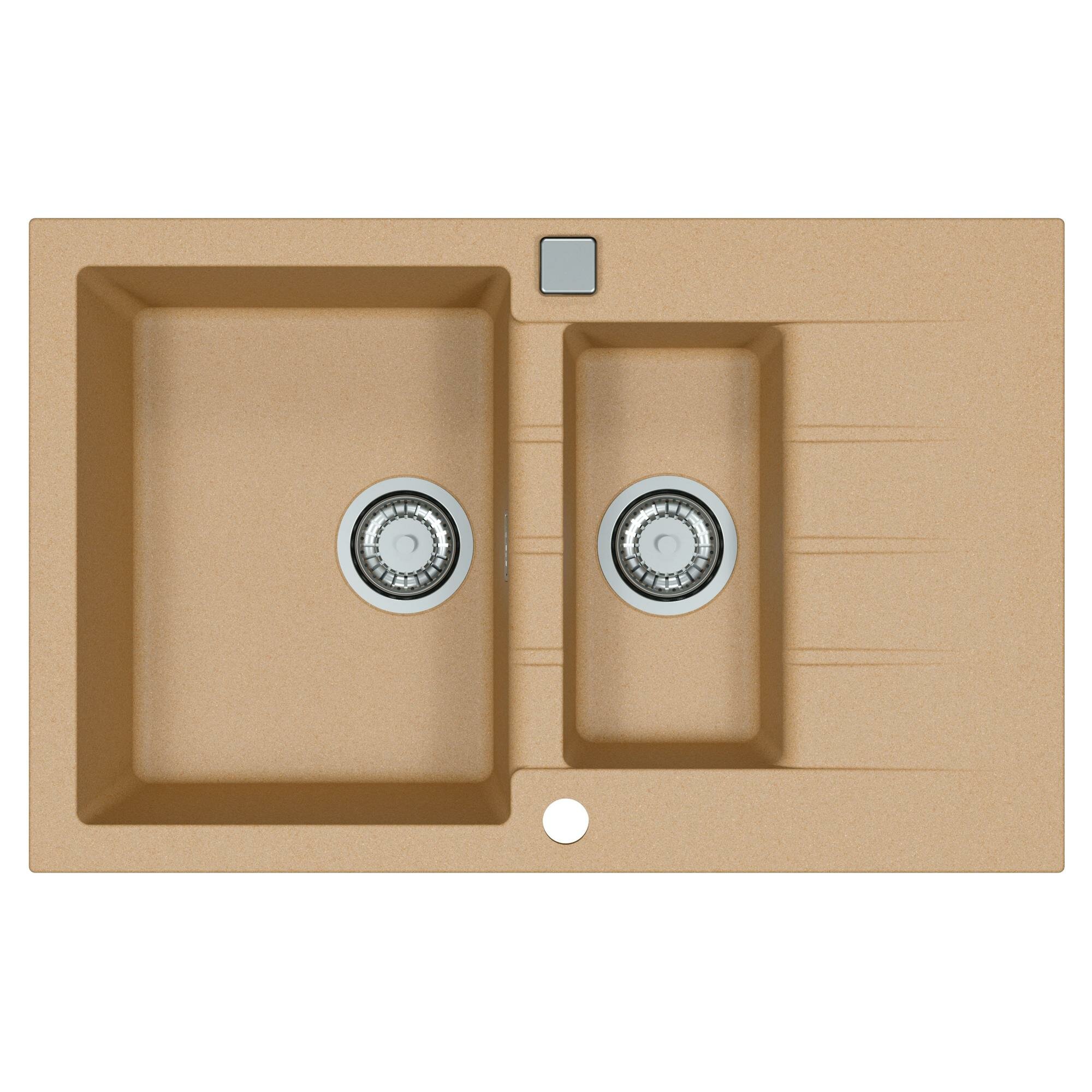 Каменная мойка для кухни с двумя чашами и крылом ALVEUS GRANITAL CADIT 70 BEIGE - G55 790 X 500 искусственный камень гранит с сифоном. Цвет бежевый