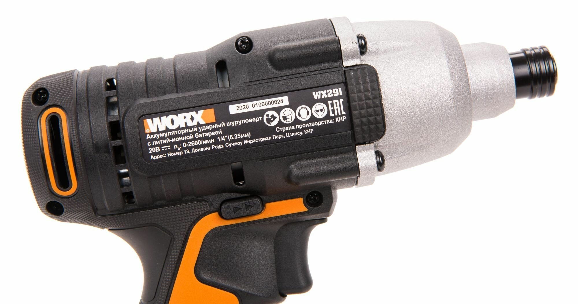 Шуруповерт импульсный ударный аккумуляторный WORX WX291, 20В, 2Ач х1, кейс