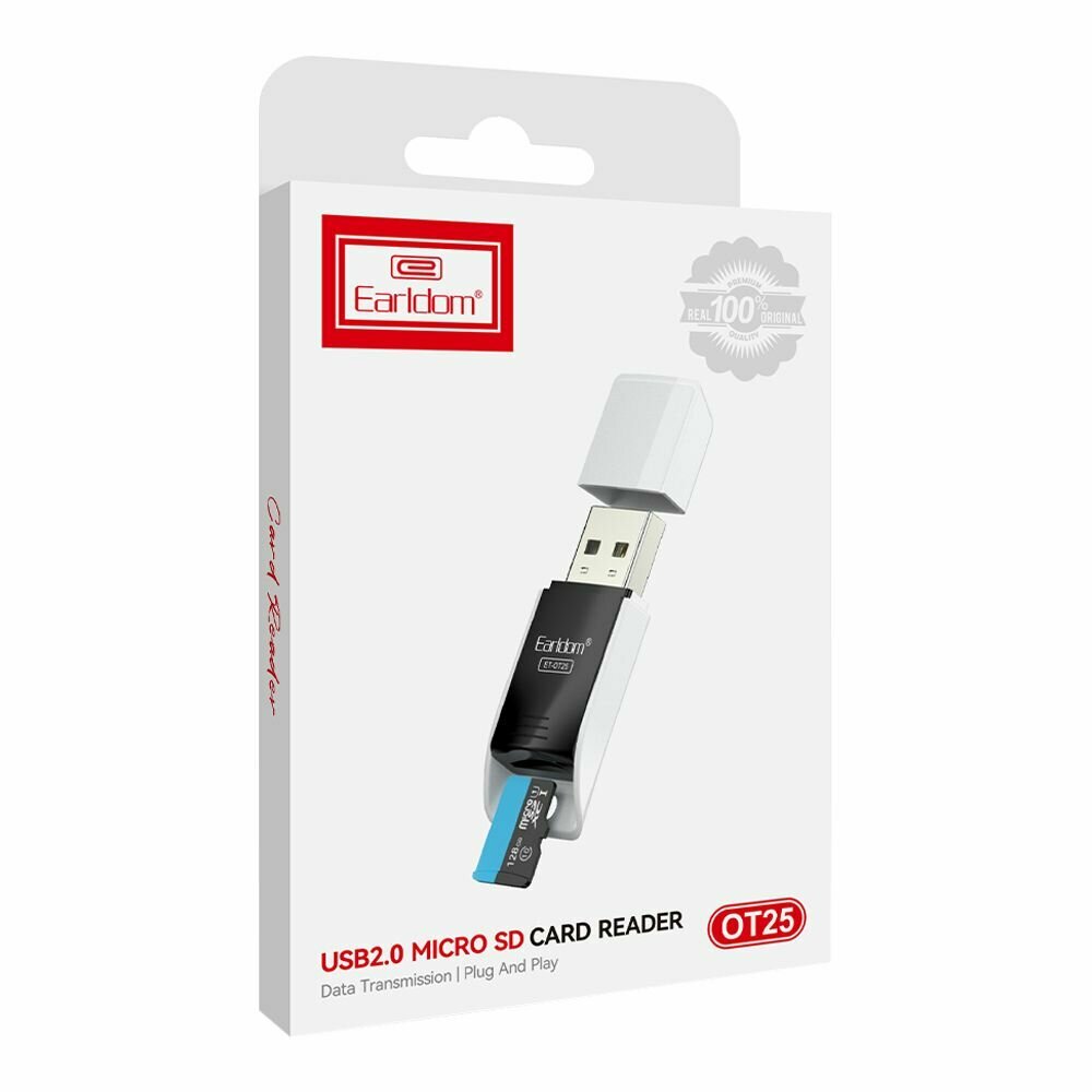 Кардридер Earldom для microSD, ET-OT25, USB 2.0, пластик, цвет: белый, с чёрной вставкой