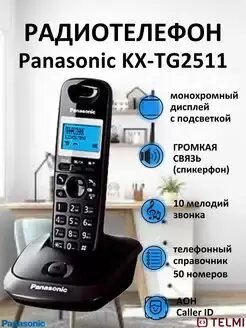 Телефоны цифровые PANASONIC KX-TG2511RUT спикерфон, телефонная книга: 50 номеров, черный интересное: