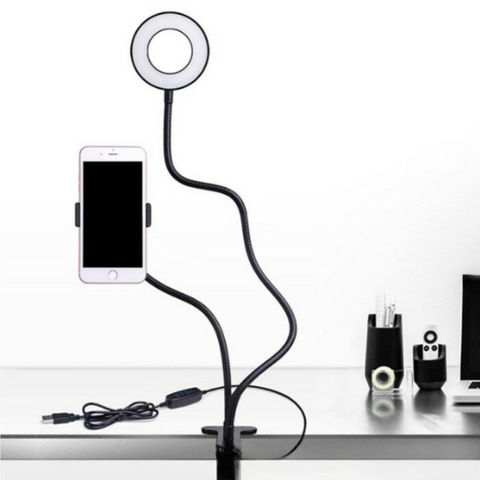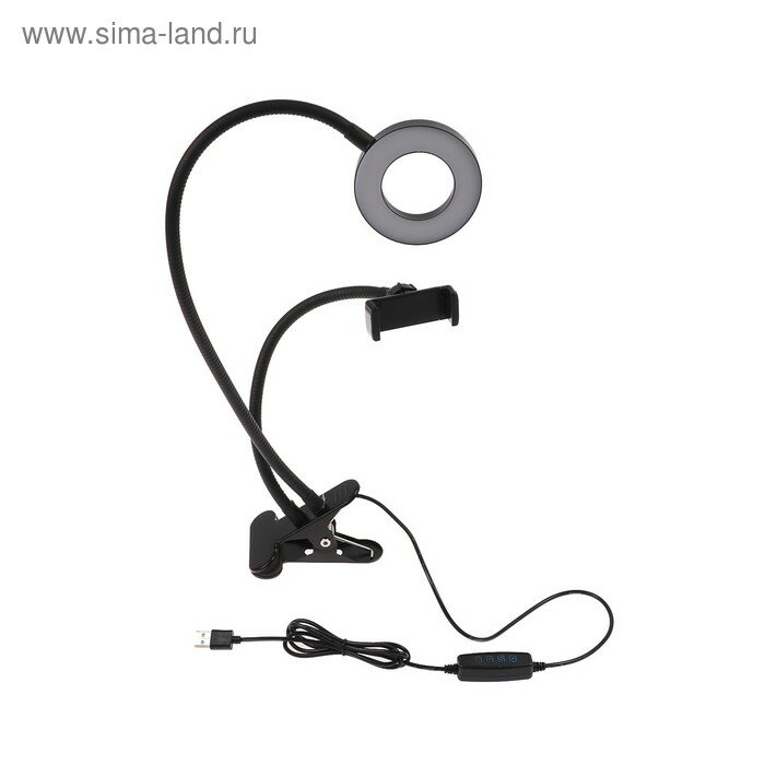 Светодиодная кольцевая лампа Luazon СК-001, гибкая ножка, 5 Вт, 12 ламп, 10 режимов интересное: