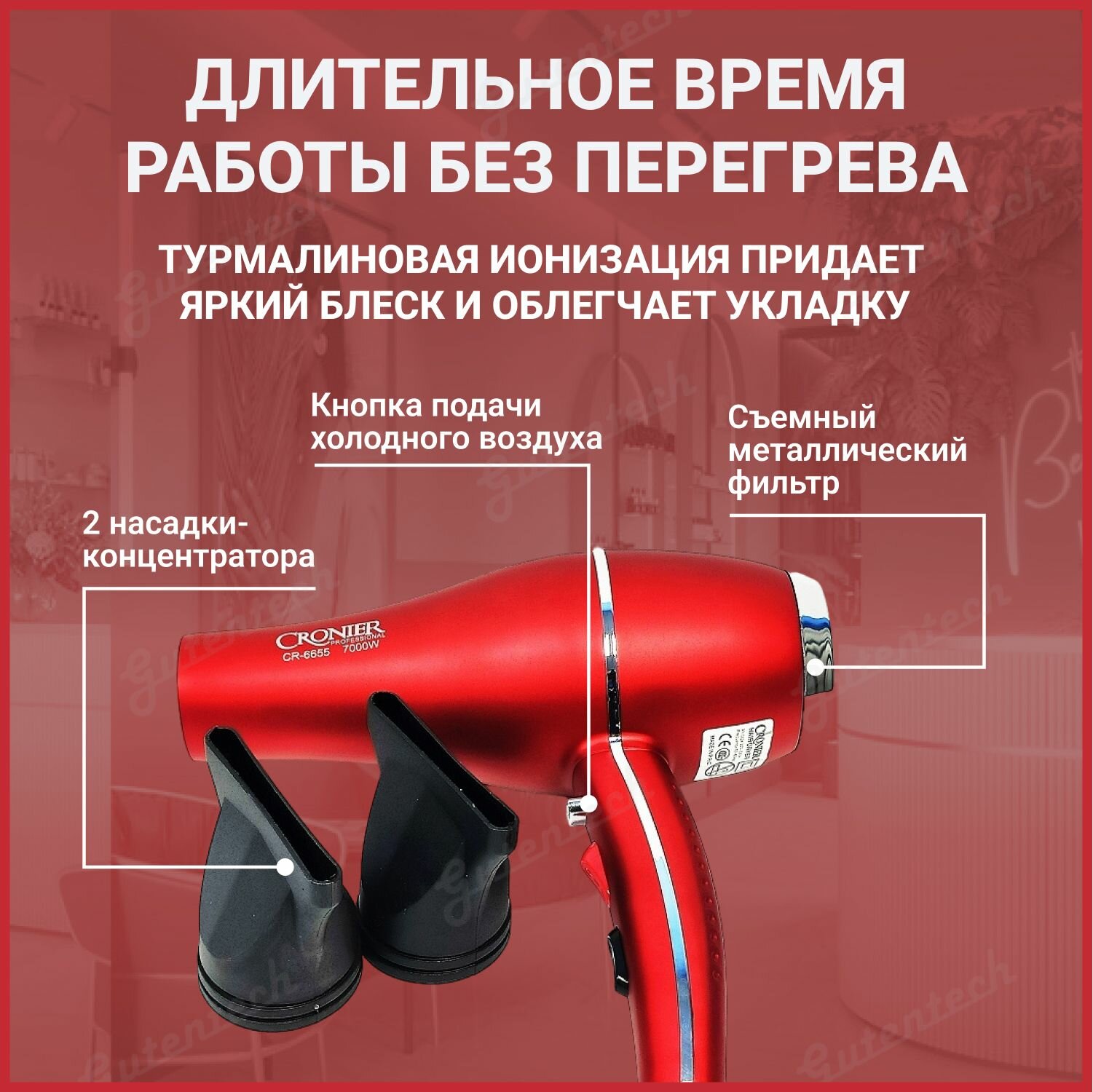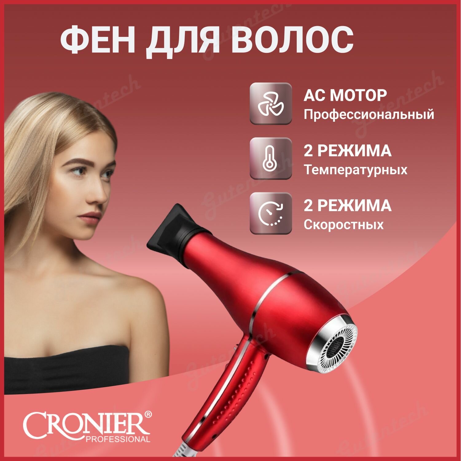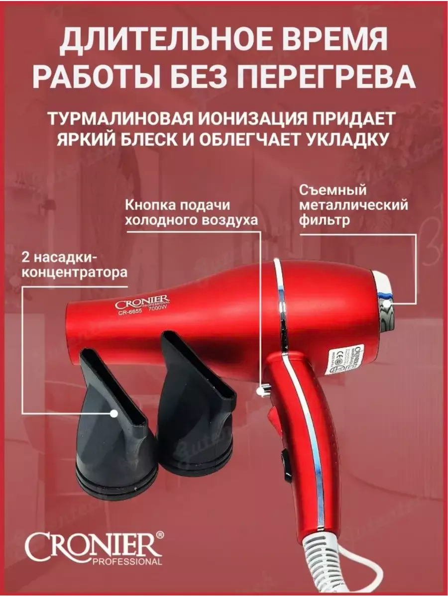 Фен Cronier для сушки и укладки волос Сr-6655, Красный интересное: