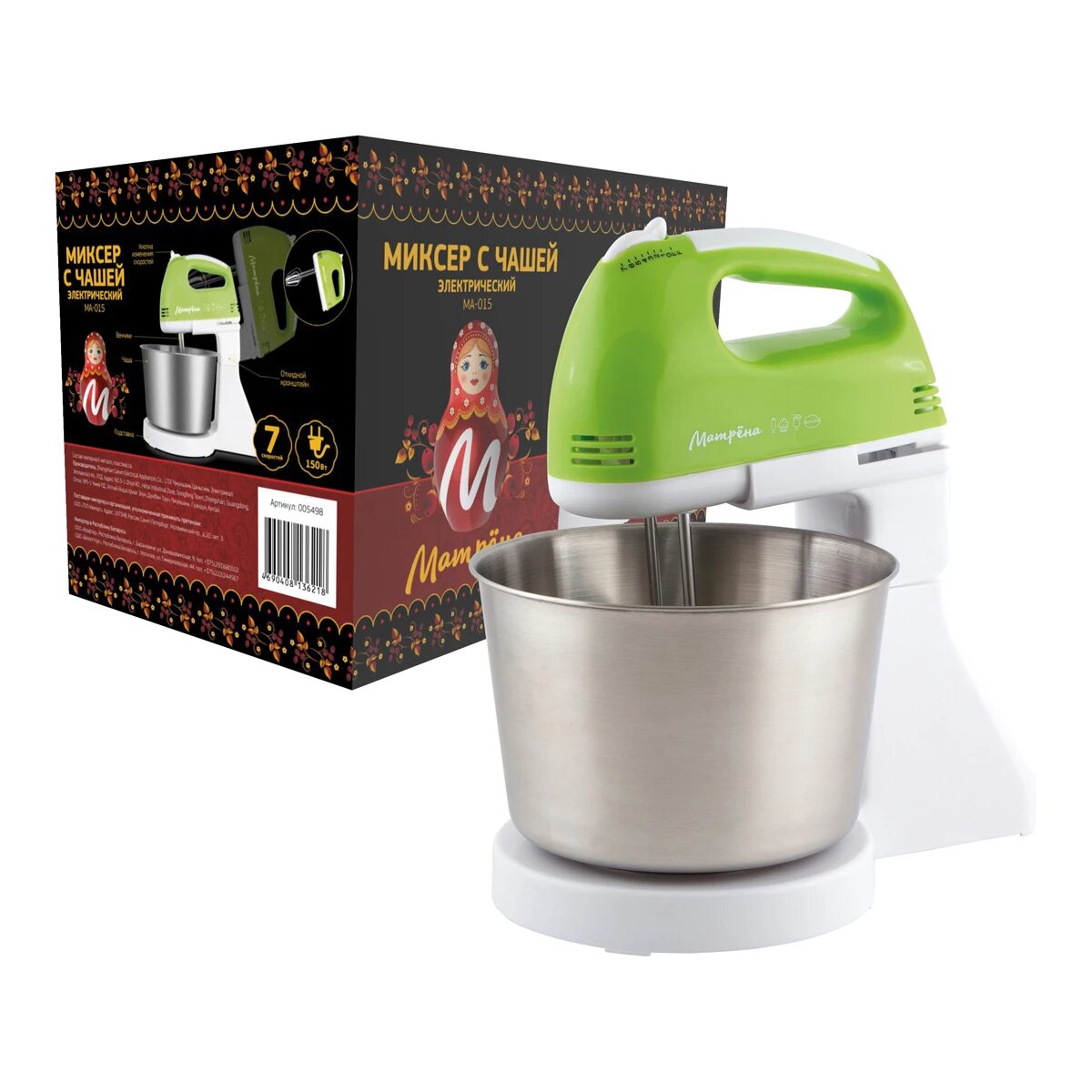 Миксер С Чашей 150ВТ 7 Ск.режимов Чаша МЕТ 2,0Л Бел/зел 5498 Матрена МА-015 5498