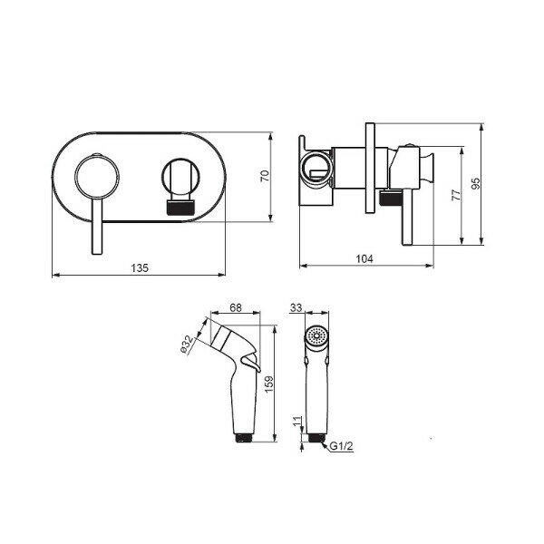 Смеситель для гигиенического душа Damixa Option 212000000 монтируемый в стену