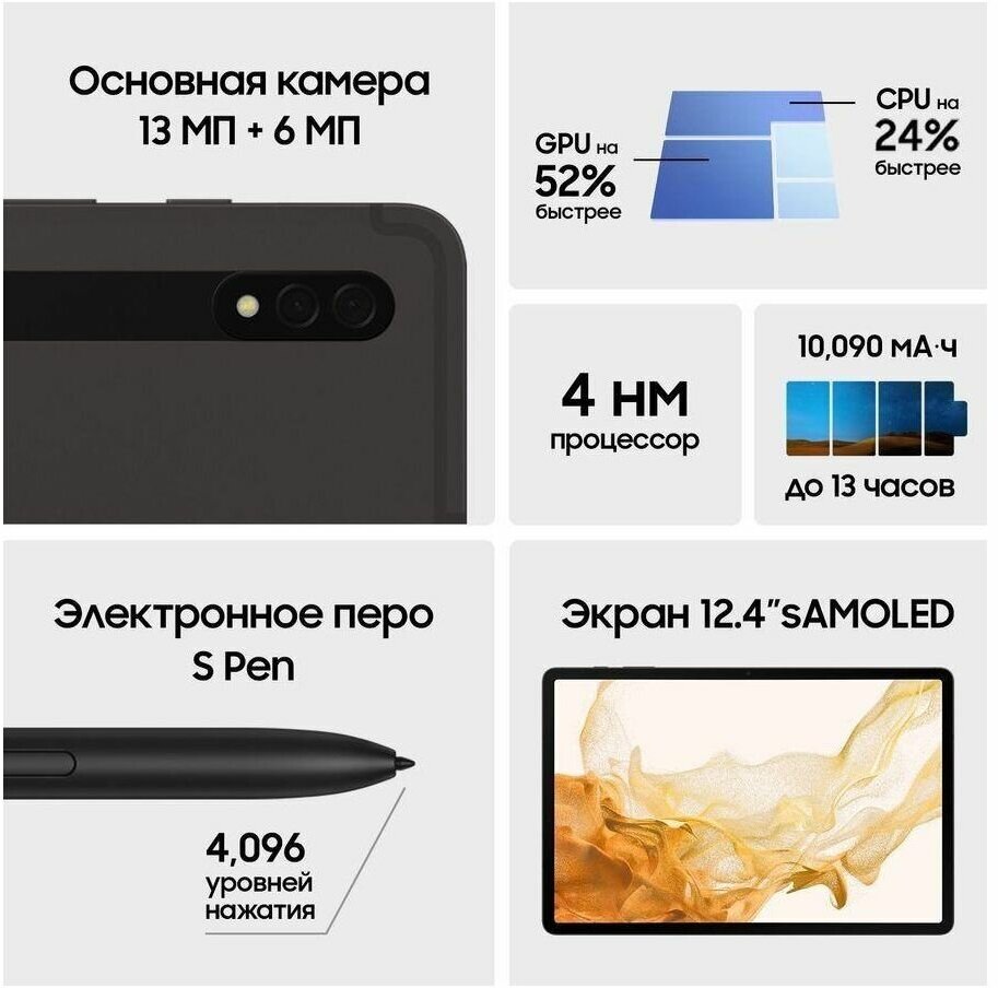 12.4" Планшет Samsung Galaxy Tab S8+ (2022), 8/128 ГБ, Wi-Fi + Cellular, стилус, Android 12, графит