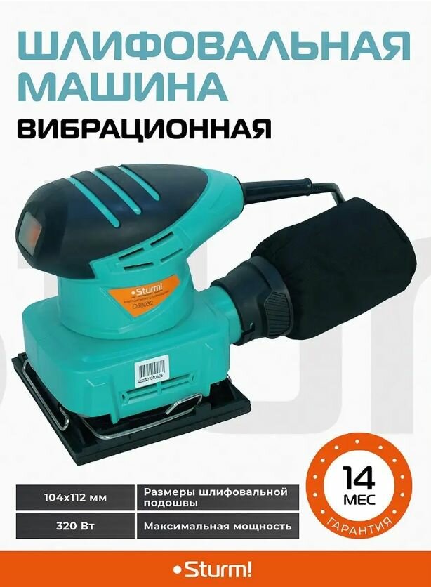 Виброшлифмашина Sturm OS8032, 320 Вт, подошва 104х112мм