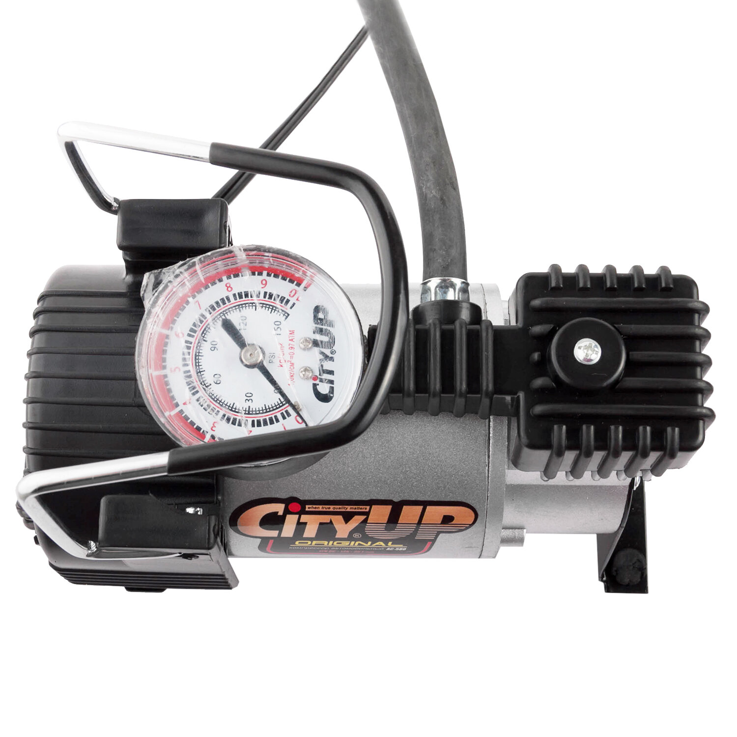 Компрессор автомобильный CityUP двухпоршневой с фонарем, 60л/мин, 300 Ватт, сумка в комплекте + переходник для АКБ