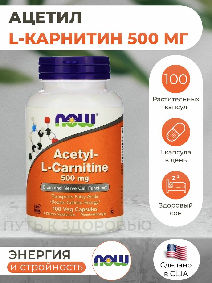 NOW ACETYL-L-CARNITINE 500 мг (100 вег.капс)