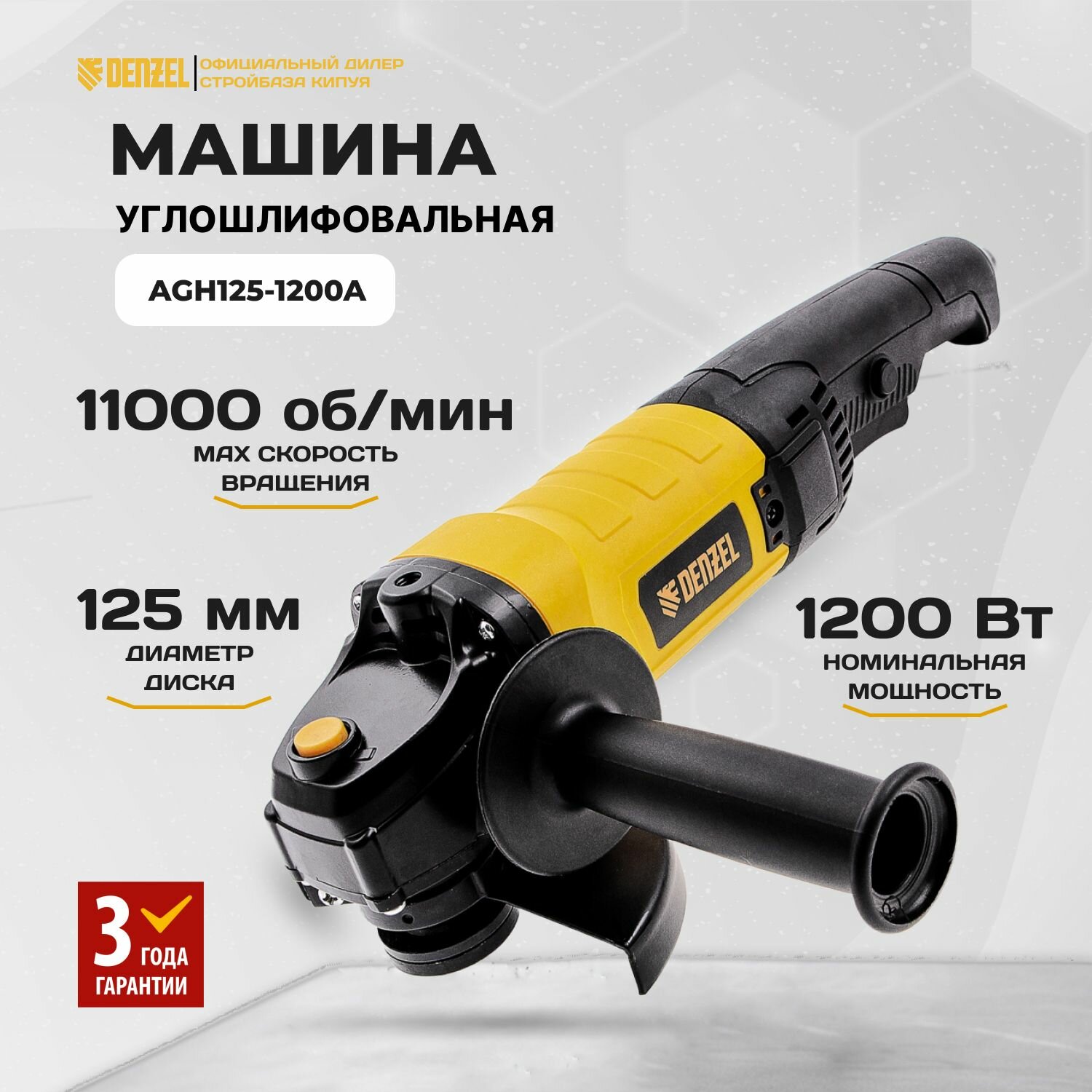 Машина шлифовальная угловая AGH125-1200A, 1200 Вт, 125 мм, 11000 об/мин Denzel