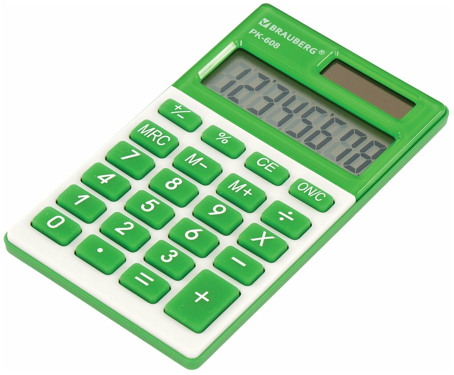 Купить Калькулятор карманный BRAUBERG PK-608, зеленый
