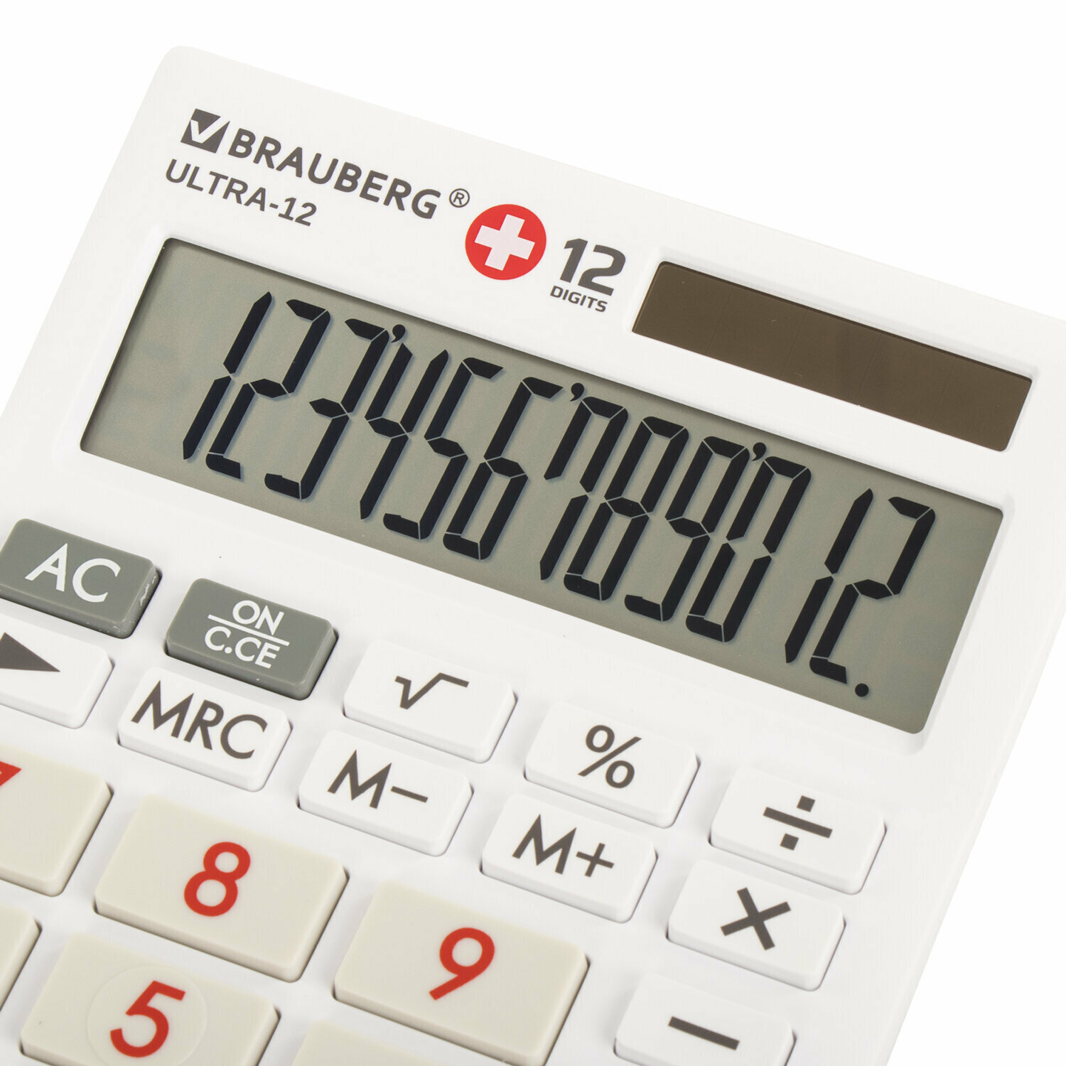 Калькулятор настольный Brauberg Ultra-12-WAB, 12 разрядов, двойное питание, белый (250506)