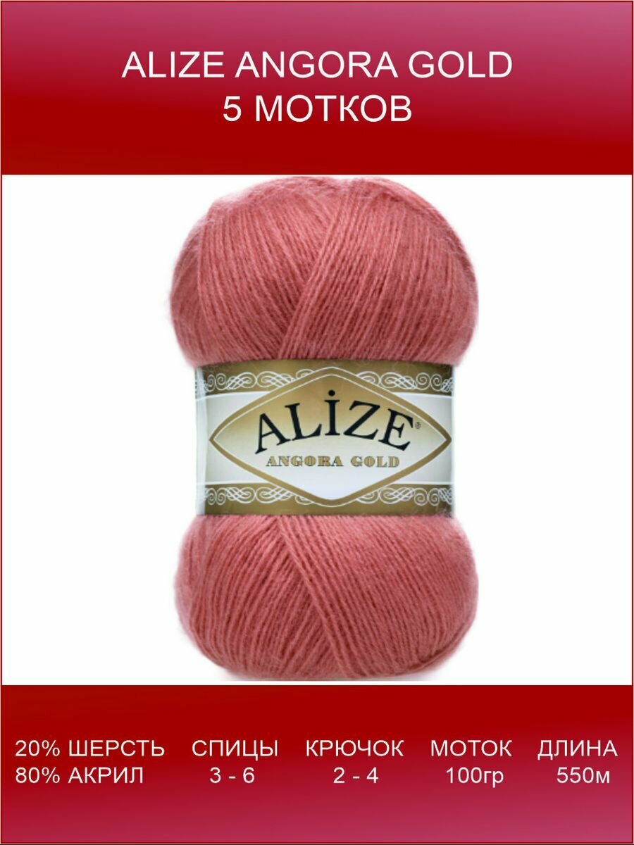 пряжа Ангора Голд Alize Angora Gold упаковка 5 мотков 100 г. 550 м. 20% шерсть 80% акрил цвет 28 роза