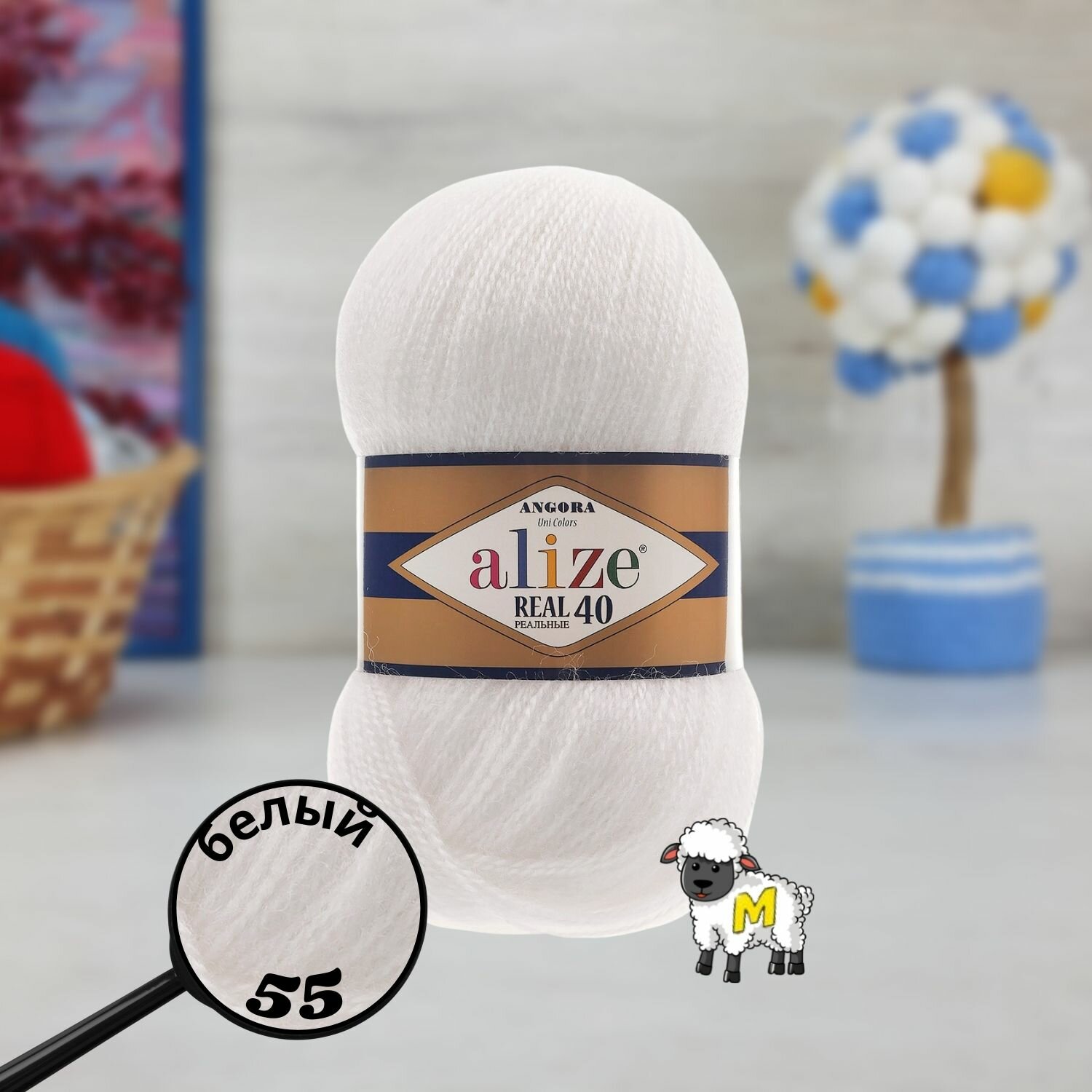 СохранитьПряжа ALIZE ANGORA REAL 40, белый - 55, 40% шерсть, 60% акрил, 5 мотков, 100 г., 430 м. интересное: