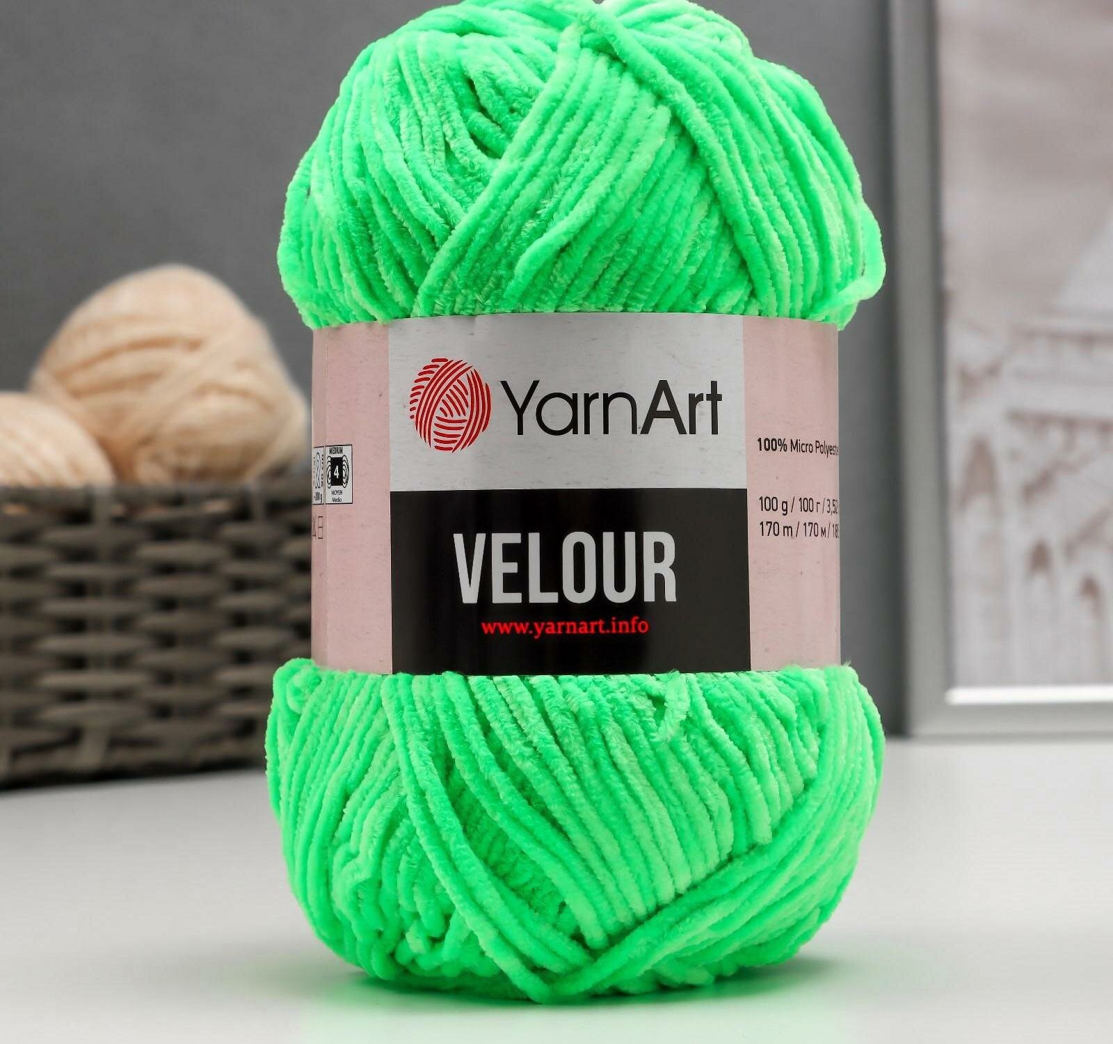 Пряжа Velour 100% микрополиэстер 170м/100г (861 яр. зеленый)