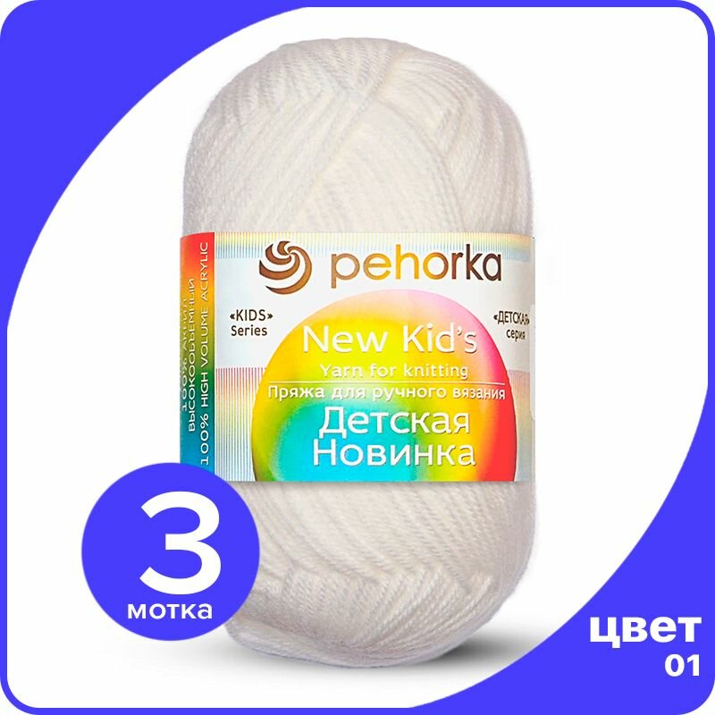 Пряжа Детская новинка (Пехорка), Белый - 01, 100% акрил высокообъёмный, 10 мотков, 50 г., 200 м.