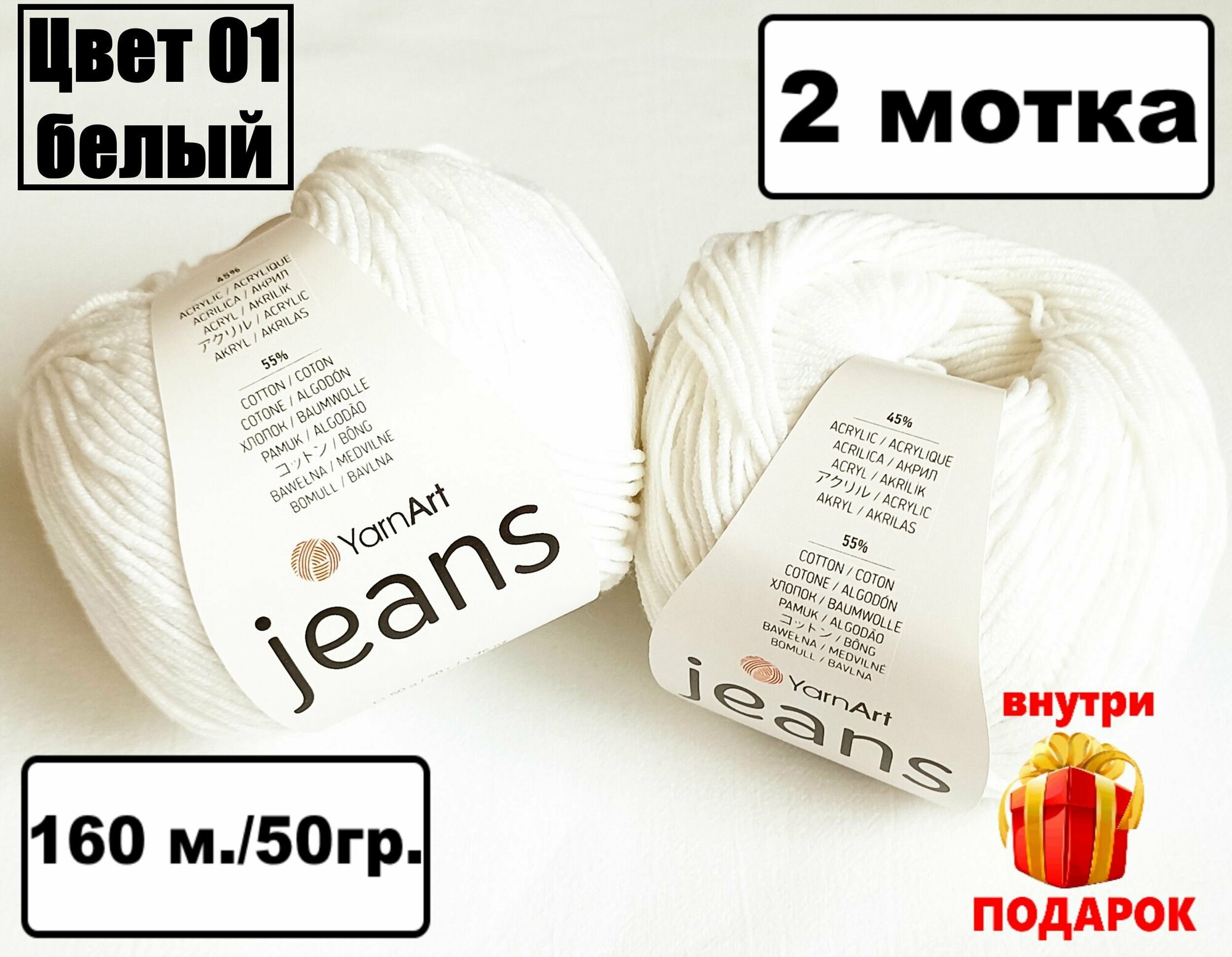 Купить Пряжа YarnArt Jeans Ярнарт джинс Белый (01) 2 мотка 50 г/160 м (45% акрил 55 хлопок)