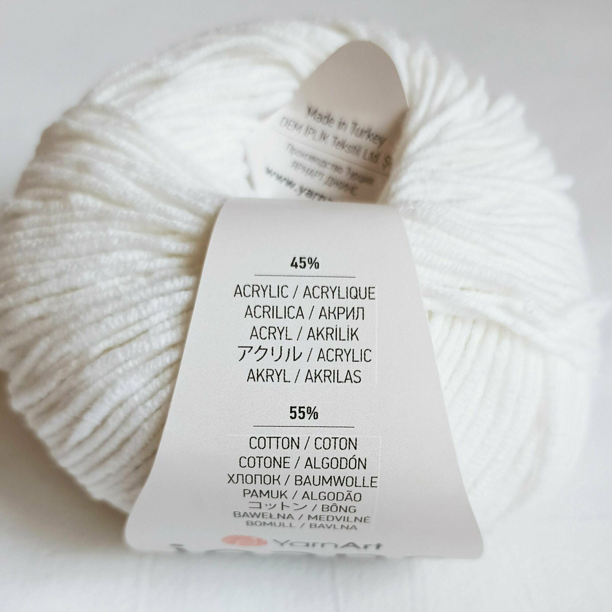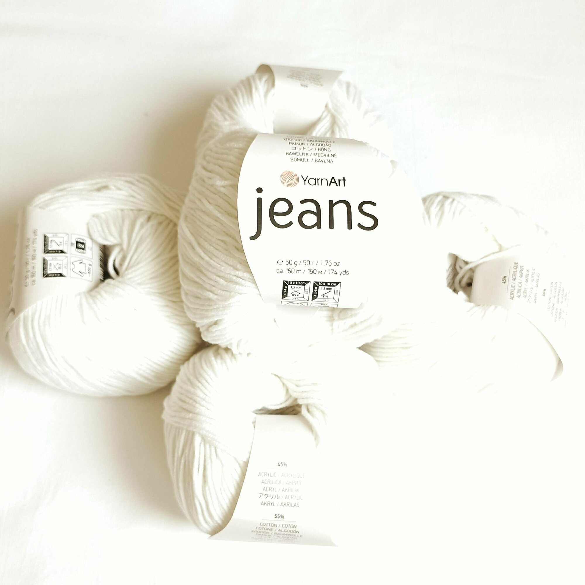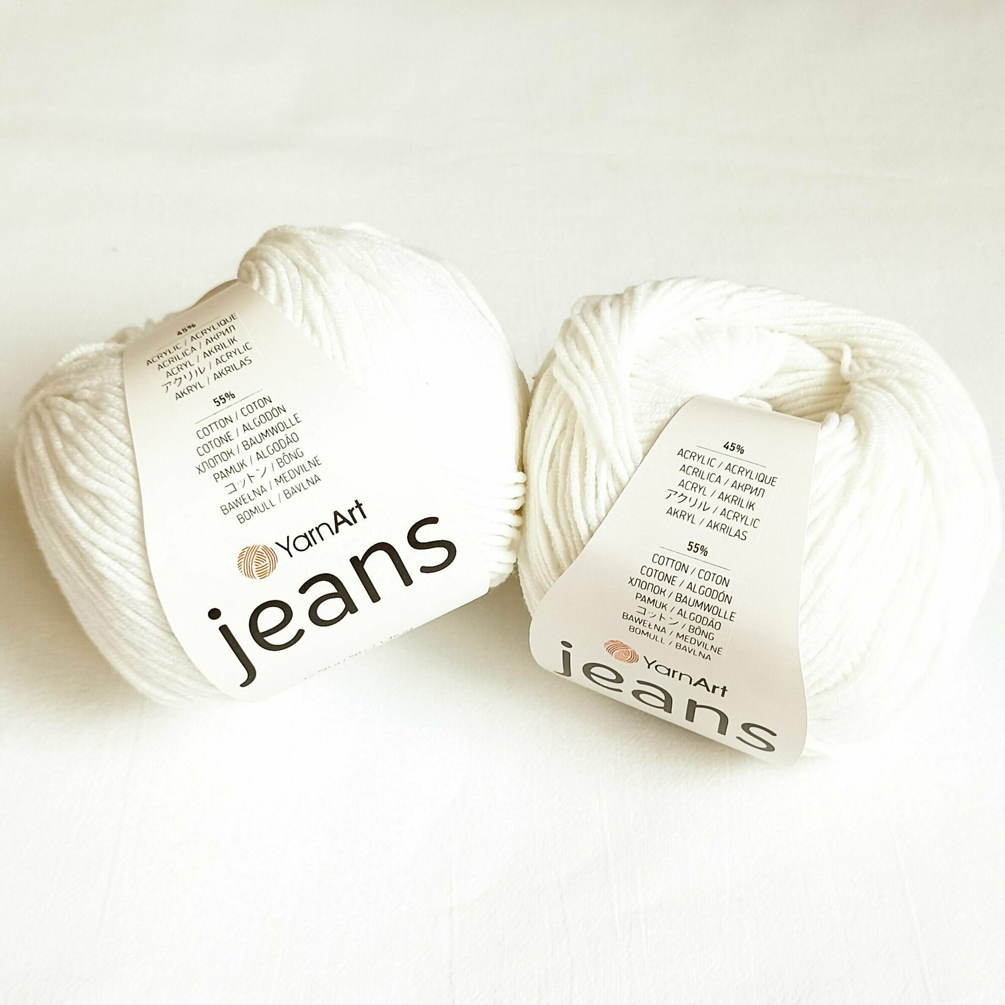 Пряжа YarnArt Jeans (Джинс) 01 белый 55% хлопок, 56% полиакрил 50г 160м 5шт