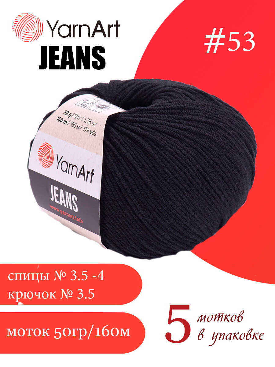 Купить Пряжа YarnArt Jeans Ярнарт джинс Черный (53) 5 мотков 50 г/160 м (45% акрил 55 хлопок)