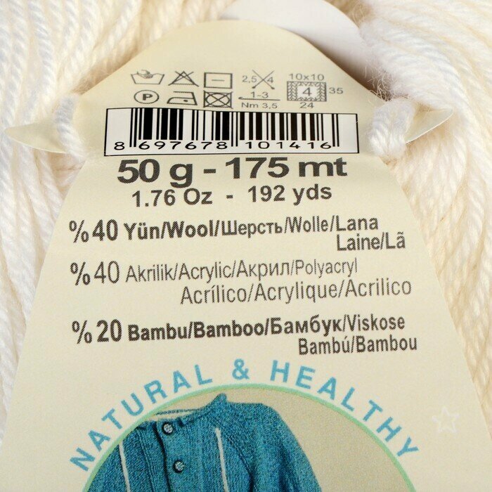 Пряжа Alize Baby Wool кремовый (01), 40%шерсть/20%бамбук/40%акрил, 175м, 50г, 3шт