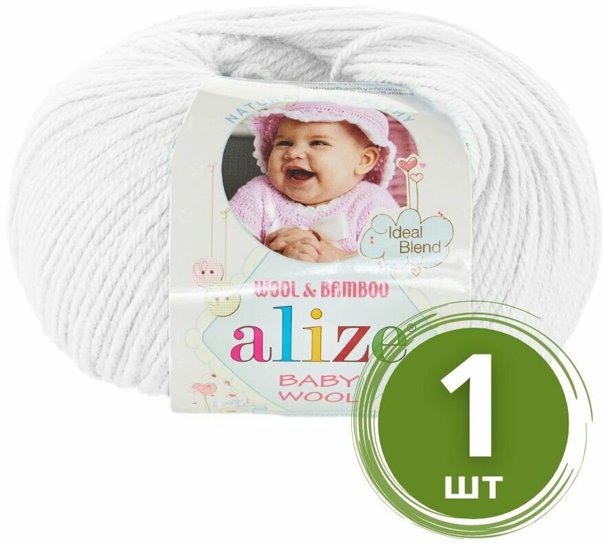 Пряжа для вязания ALIZE BABY WOOL Ализе Бэйби Вул Детская: 55 (белый) / 1 шт / 175 м / 50 г / 40% шерсть, 20% бамбук, 40% акрил