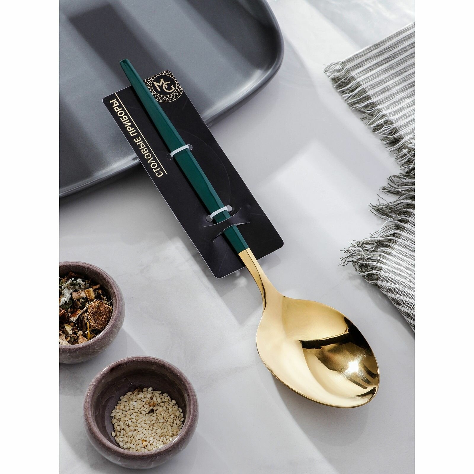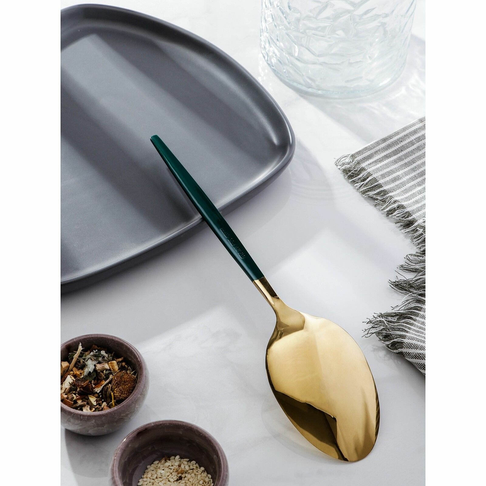 Ложка гарнирная Magistro Грэйс, 27,5 см, цвет ручки зеленый, цвет головы золотой Magistro 7354117 .