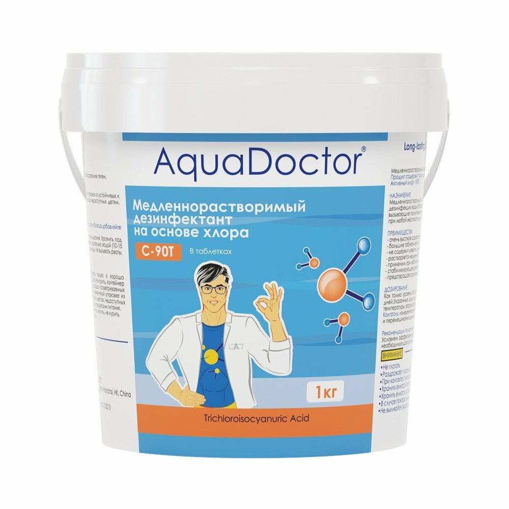 AquaDoctor, хлор, 1кг ведро, табл.200гр, медленнорастворимый, на основе 90% активного хлора (C-90T/1KG), уп.1