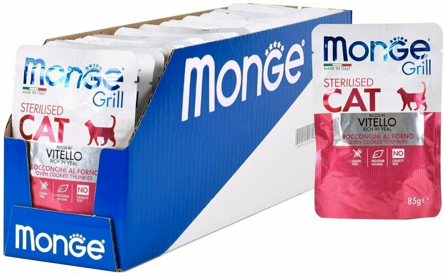 Monge Cat Grill Pouch паучи для стерилизованных кошек итальянская телятина 85г х 12 шт.