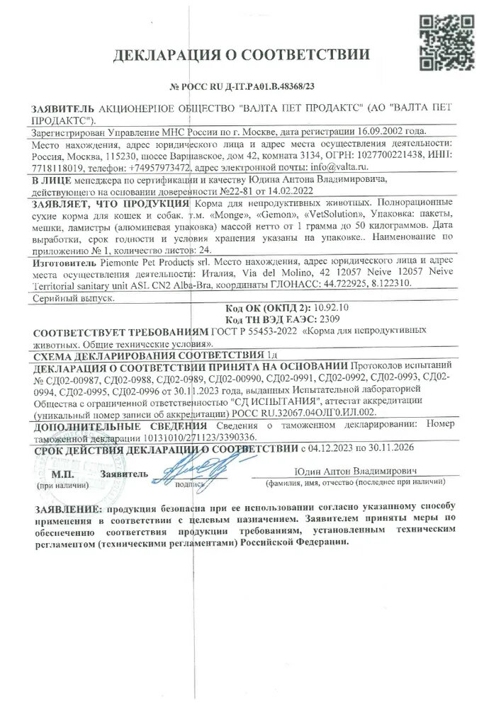 | Отзыв: | Покупаю лет пять уже. Делают в Италии. Йёрик сам выбрал его, в магазине пробовали все корма, что были открытыми))) Превереда ещё тот. Подобрали китайца пухового, тоже ест с удовольствием. Да и ветеринары советуют моногамное питание.